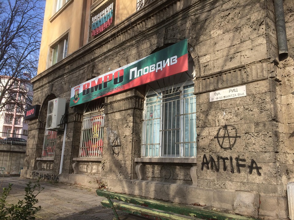 С надписи „Смърт на фашизма“, „Нацисти по улиците“ и емблемата на антифашистката пропаганда осъмна клубът на войводите в града под тепетата тази сутрин. Причината за наглото деяние засега е неизвестна.