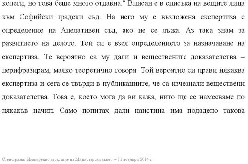 "Аз моля и правосъдният министър, ако това е вярно, по тези тефтерчета, за които ние много пъти питахме истински ли са тогава и да ни се дадат в парламента да ги видим – тефтерчетата да видим, а не снимки на две-три странички. Ние още тогава питахме. И фактът, че бяха при Кирил Добрев достигнали, винаги това значи за мен много съмнителна работа. И ако това, което казва Вучков, аз не мога да допусна, а предполагам, като виждам как гледат колегите – и другите не могат да допуснат, че по това толкова обществено значимо дело на някакъв над 60 години човек ще му дадат – само на него – да ги носи в колата си из София, да разкарва тефтери! Това ако е истина, ако съдът или прокурорът – и затова те моля да го провериш най-колегиално – са дали по този начин веществените доказателства, не знам дали това трябва да е така.