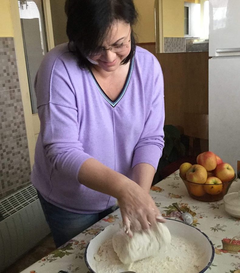 Заедно с посланието тя публикува и три снимки. На първите две се вижда как е запретнала ръкави и меси питката с късмети и тиквеник, а на третата е снимала празничната трапеза.