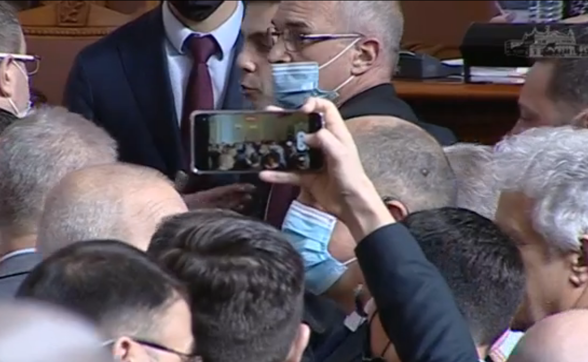 Нажежените страсти, физическия и словесен сблъсък принудиха председателят на парламента да даде 20 минути почивка.