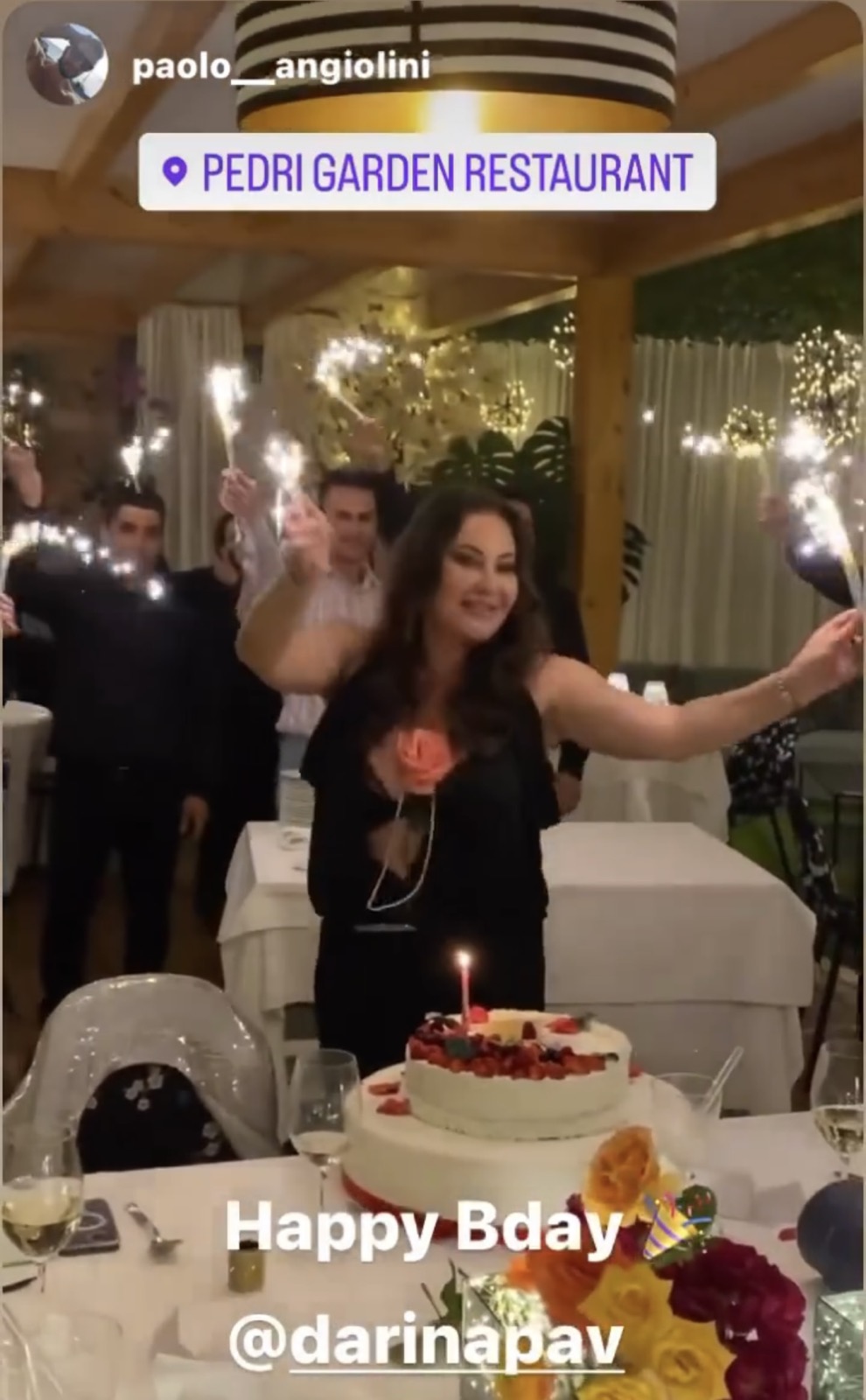 На сантиметри от дясната страна на Дарина пък седеше брадът на Джовани - Паоло Анджиолини, не по-малко красив и известен в Италия от него. За пръв път двамата братя присъстват на рожден ден на Павлова, от който пък отсъстваши верният й години наред Сандро Рубини.