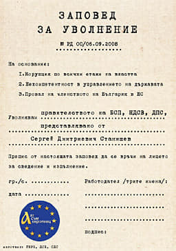 През октомври 2008г. ГЕРБ, ДСБ и СДС връчихме 1 053 000 заповеди за уволнение на корумпирания кабинет Станишев, подписани от българските граждани. В него Нинова беше ключов зам.министър, а много от сегашните ръководители в БСП - на върха на държавната машина.