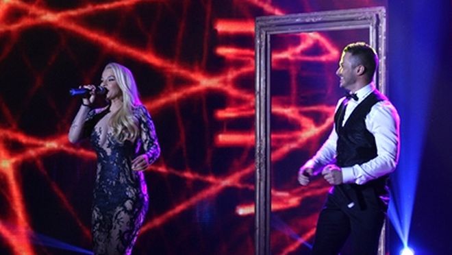 Изпълнителката на "Мъжете всичко искат" изпълни хитовата си дуетна песен с Галин почти гола. Деси смъкна принцеската бяла рокля и се напъха в тясна полупрозрачна одежда.