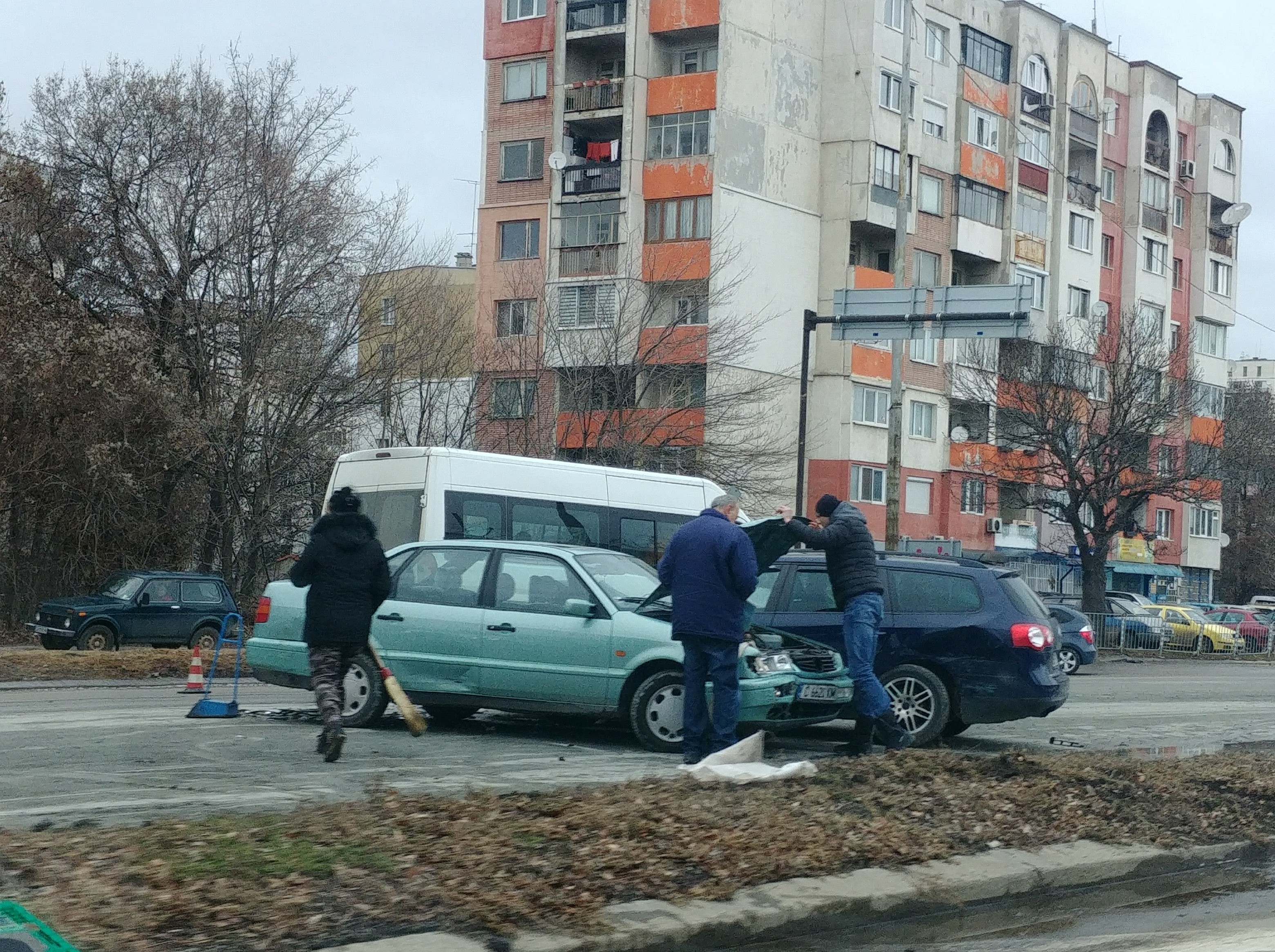 Жестока катастрофа е станала преди минути под "детелината" на надлез "Надежда", научи ПИК от свои читатели. Мелето е станало между 4 коли и автобус.