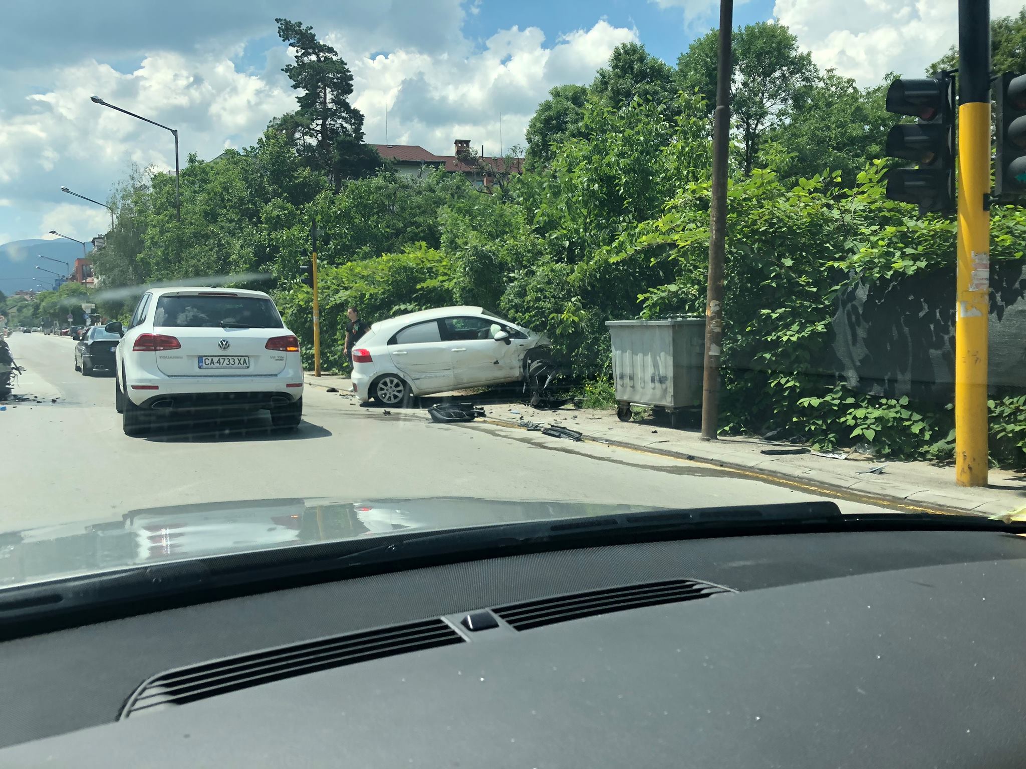 Жестоко меле е станало преди около час на "Симеоновско шосе", научи ексклузивно ПИК. При опит да направи обратен завой, тузарския "Мерцедес" е останал без предница. От силния удар, колата която е била срещу него се е ударила в оградата, разказаха очевидци пред ПИК.