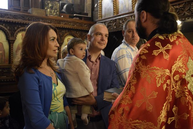 Меги Димчева, една от водещите на "Търси се", въведи в православната вяра своя син Константин.