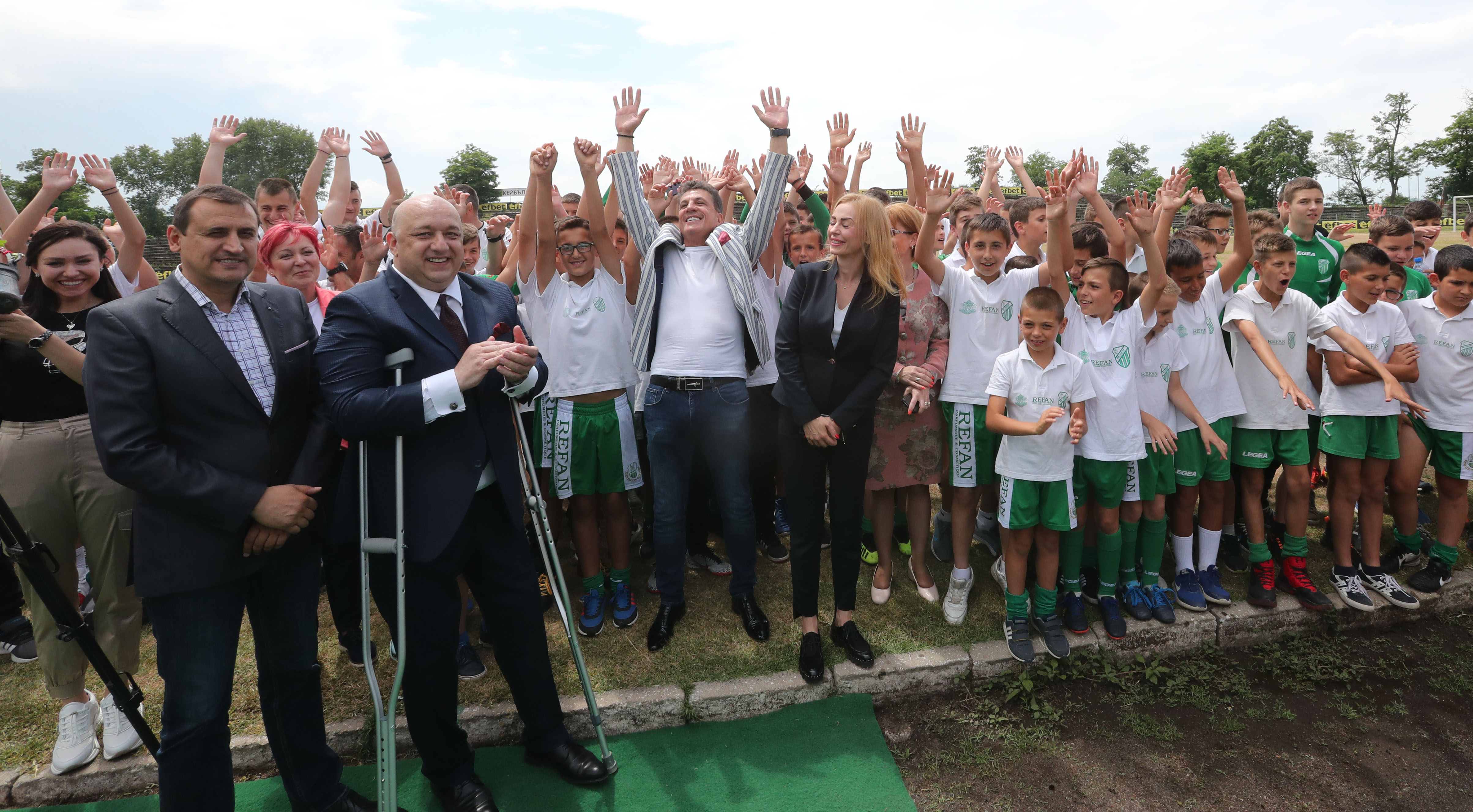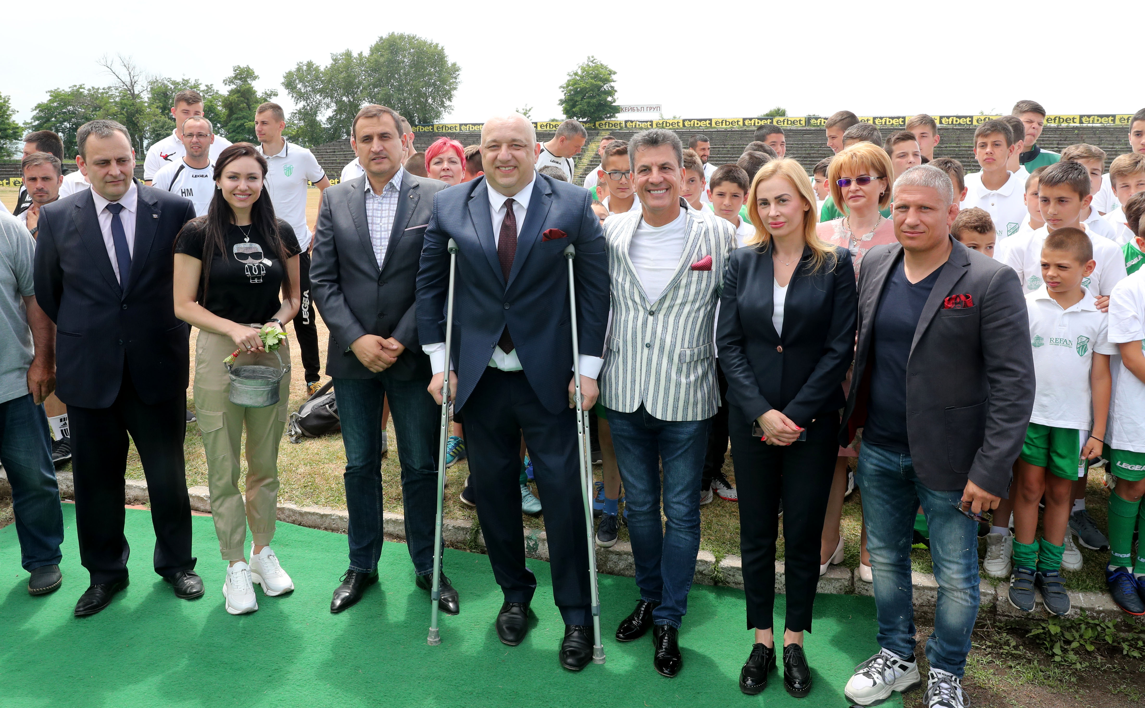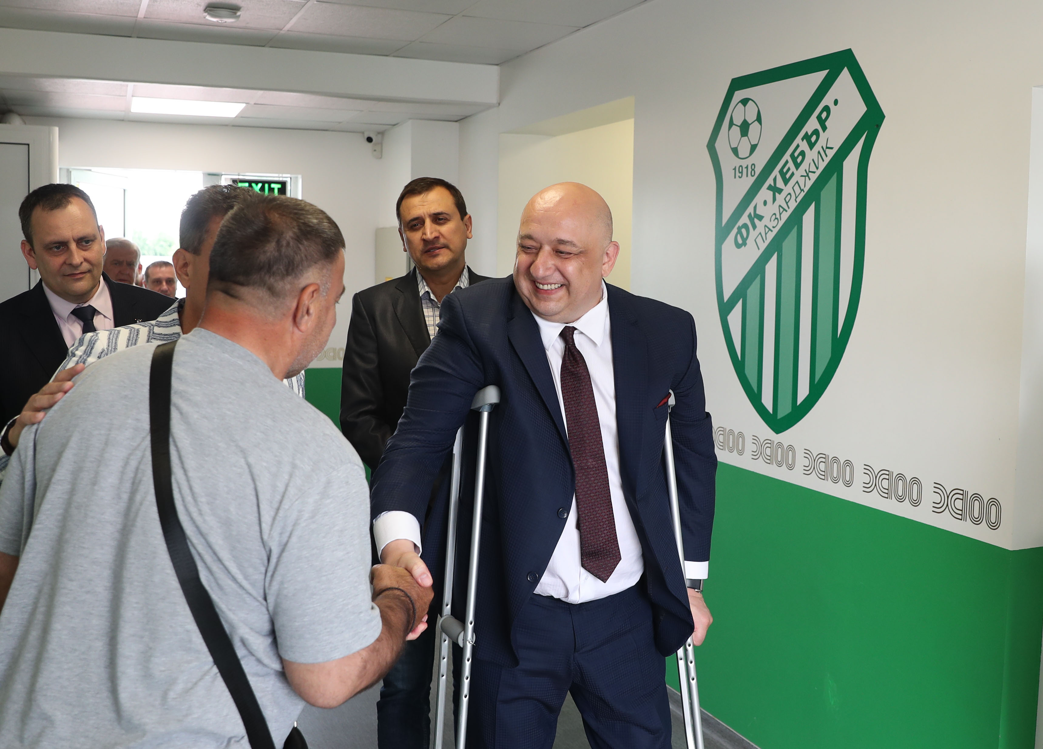 Минисътр Красен Кралев намери сили да открие нов стадион, въпреки здравословното си състояние. Той дойде с патерици, които се налага да ползва заради претърпяна наскоро в Барселона операция на менискус.