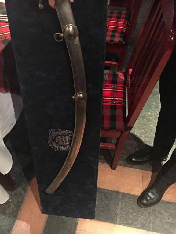 „Преди официалната вечеря аз му подарих фиала на българските ханове, а той на мен оригинална, автентична сабя от 1837 година”, това написа преди малко премиерът Бойко Борисов в личната си страница във Фейсбук.