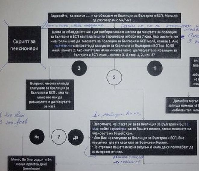 От нея се разкрива сценарият, който наетите служители са разигравали. Описани са три варианта, които трябва да се спазват по време на разговора с "анкетирания".
