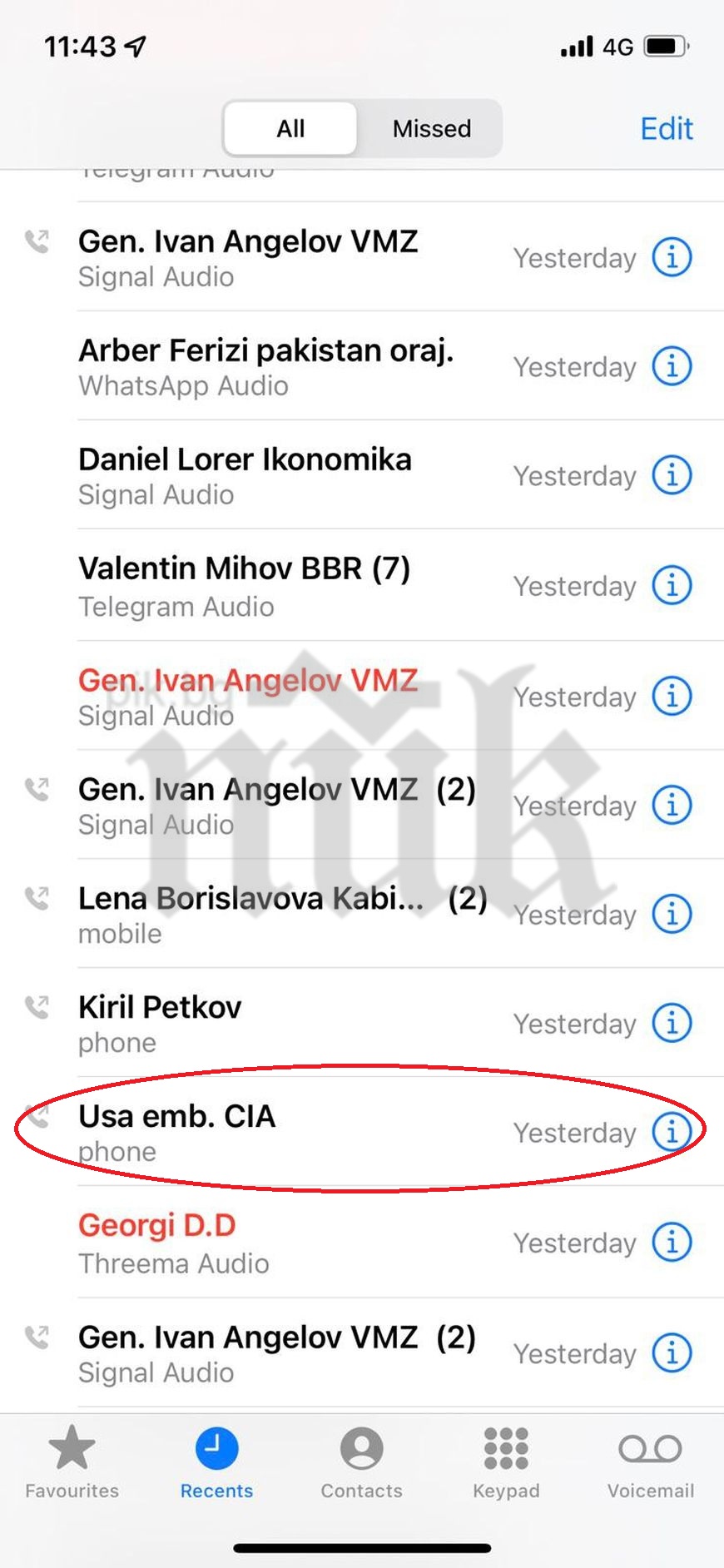 Задълбочен поглед в снимката, запечатала обажданията на Едрев, показва, че той говори и с човек на Американското посолство у нас. Позвъняването му е до контакт с име "USA emb. CIA". В предвод на български това означава, че контактът е на "Американско посолство ЦРУ".