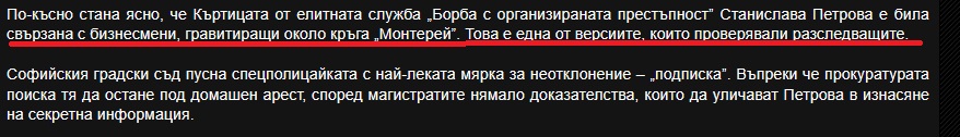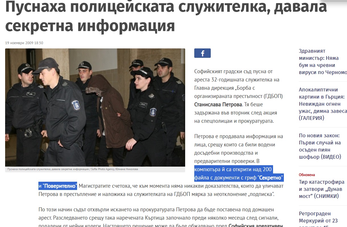 Става дума за Станислава Петрова, която през 2009 г. е арестувана по подозрение, че е продавала информация на лица, крещу които са водени досъдебни производства и предварителни проверки.