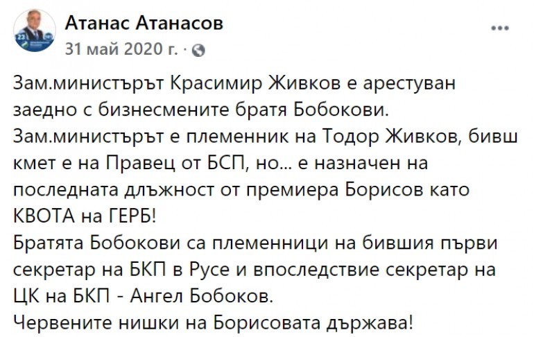 Колегата на Тафров в ДБ – Атанас Атанасов обаче преди време нарича братята „червените нишки на Борисовата държава“. „Братята Бобокови са племенници на бившия първи секретар на БКП в Русе и впоследствие секретар на ЦК на БКП – Ангел Бобоков“, обясни той преди време, а сега явно са се прегърнали в задкулисна обща цел срещу реда в държавата.