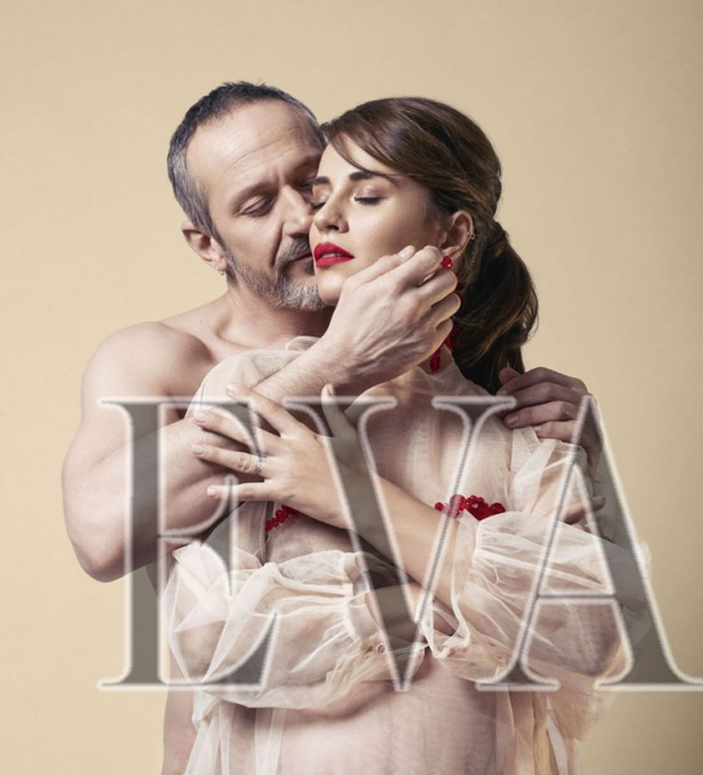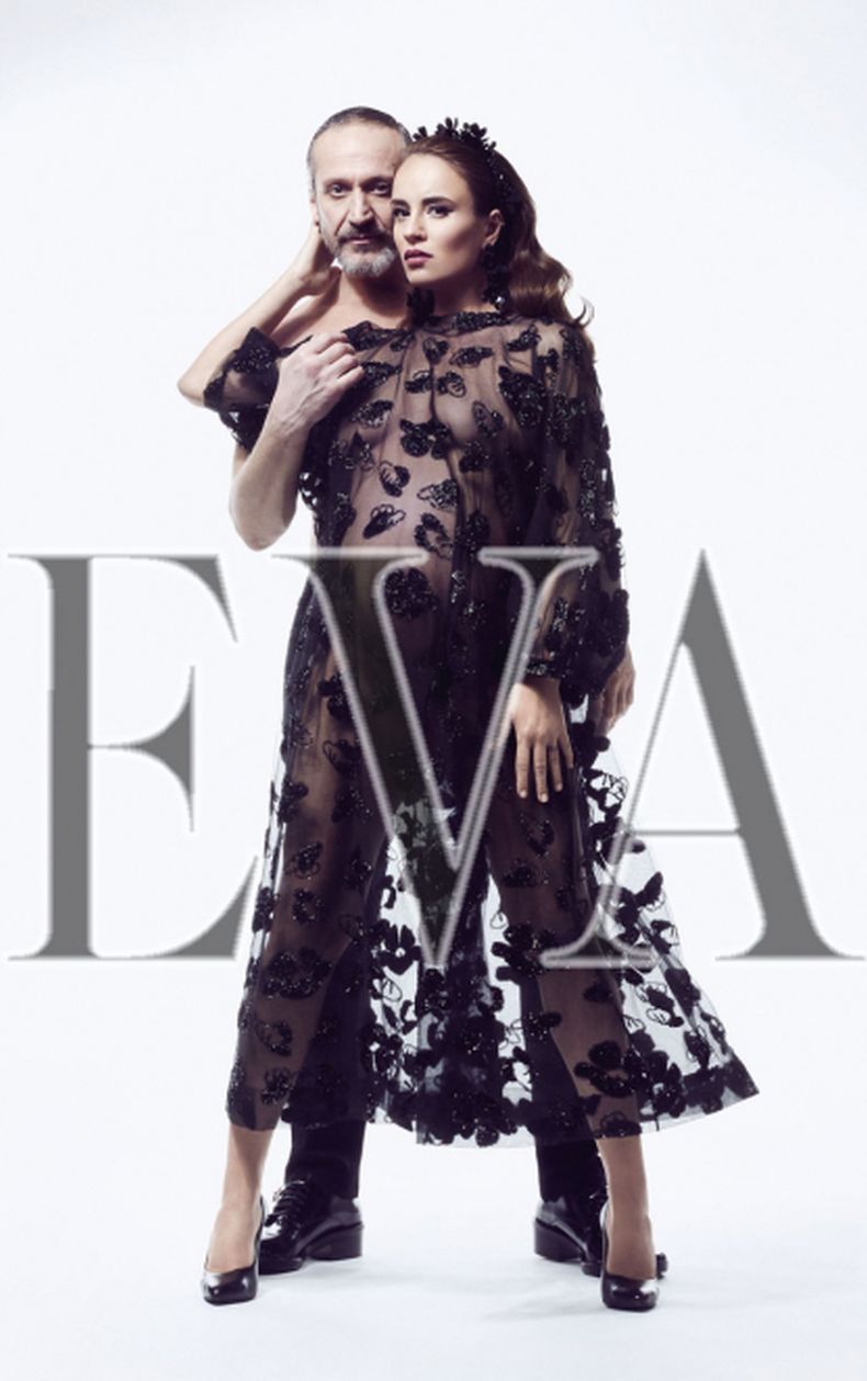 Двамата актьори позират прегърнати, а в стайлинга на Кърджилова прозира доза еротика. При по-съсредоточено вглеждане в кадрите се забелязват натуралните форми на Радина, загатната от прозрачните туники, които са й избрали стилистите.