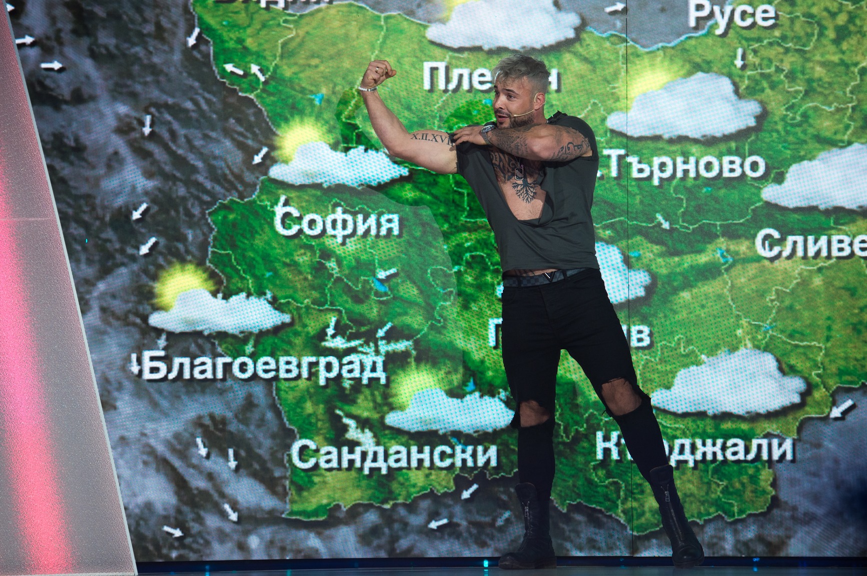 Кристиан получи задачата да прочете прогнозата за времето. Актьорът направи това, разкъсвайки тениската си и демонстрирайки мускули и коремна преса.