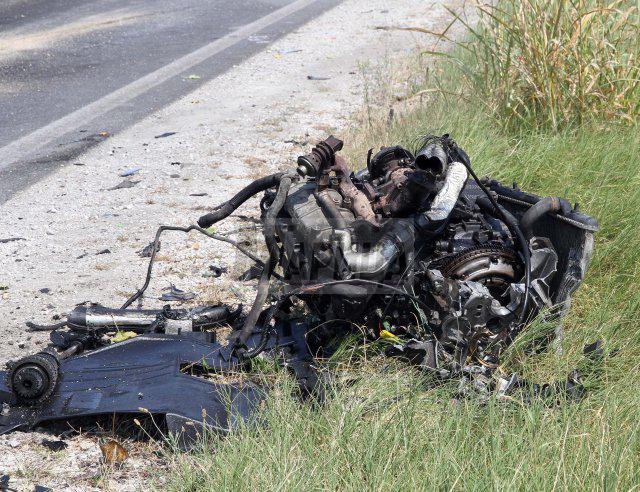 В района сякаш е паднала бомба. Части от двата автомобила се търкаляха по пътя и в нивите наоколо. Двигателят на ситроена беше изхвърчал на над 50 метра след сблъсъка.