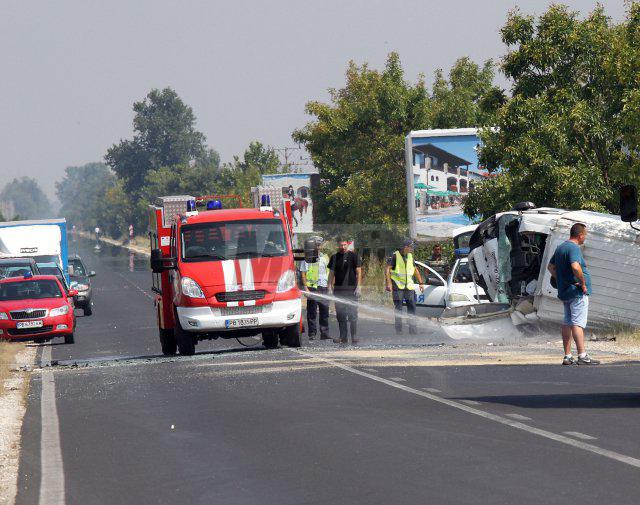 Пристигналата на място пожарна изми асфалта от разлети гориво и двигателно масло.