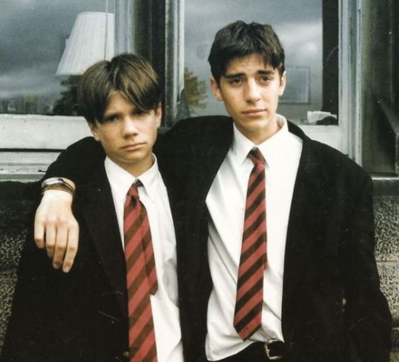 На него певецът е още тийнейджър - гимназист. Не става ясно кое момчето до него в кадъра, но заваляха коментари, които сравниха настоящия актьор и режисьор с Хари Потър.