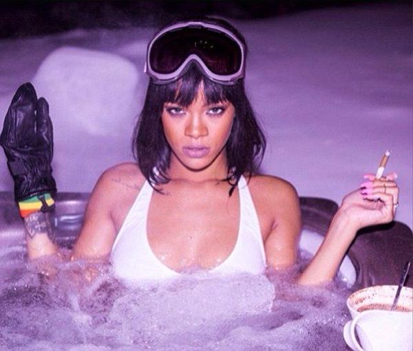 Певицата Риана по традиция празнува рождения си ден далеч от светския шум. Както и миналата година тя посрещна 20 февруари полугола и задължително с пурета в ръка.