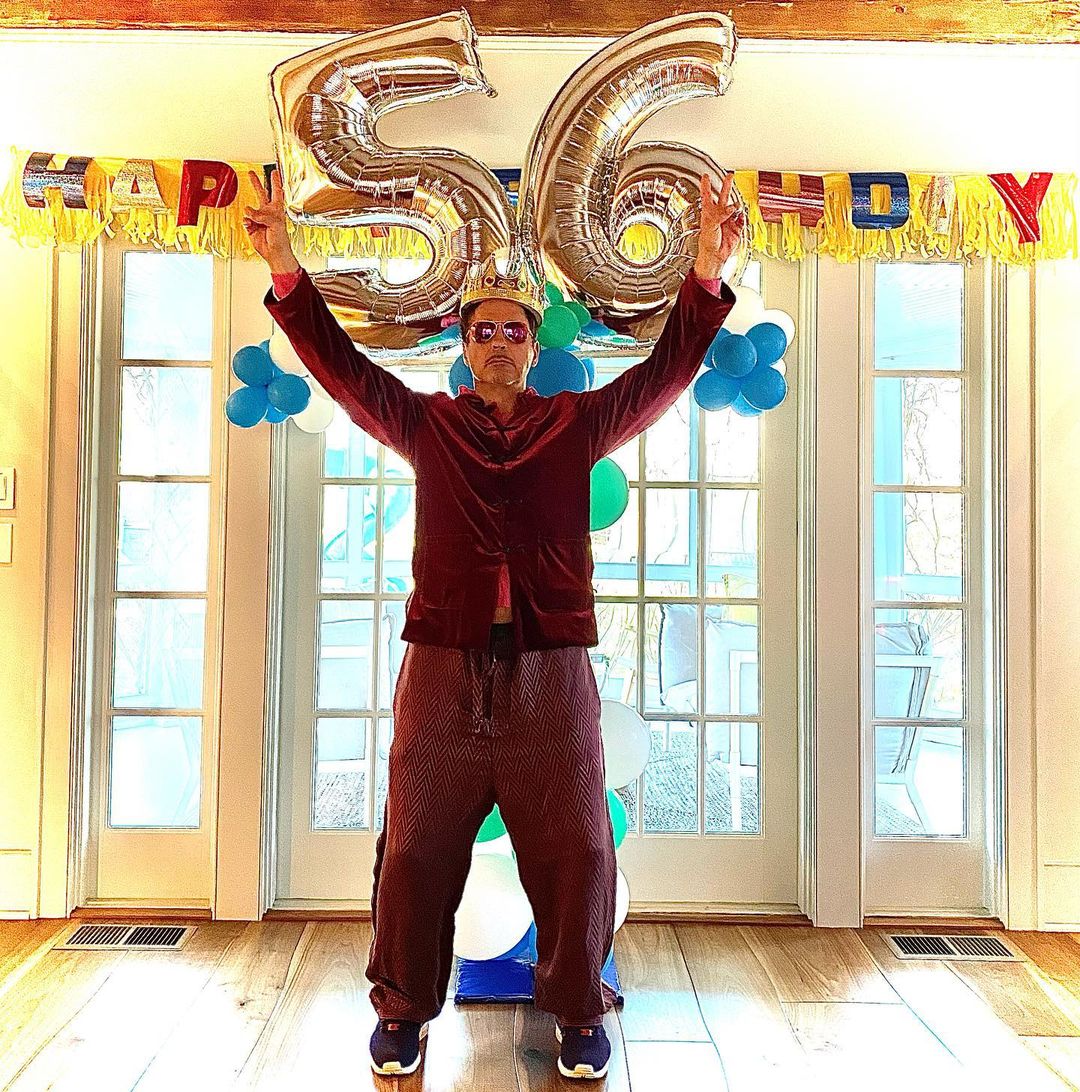 Холивудският ас Робърт Дауни Джуниър посрещна 56-ия си рожден ден в домашни условия. Това разкри самият той, като дефилира в социалните мрежи на партито си.