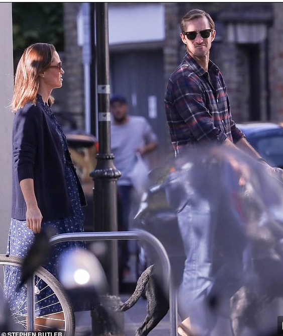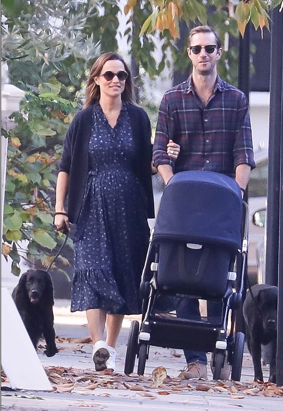 Двамата щастливи родители си говорят щастливо, докато се разхождат по тротоара, а Пипа в един момент държи ръката на съпруга си в непринуден жест на привързаност.