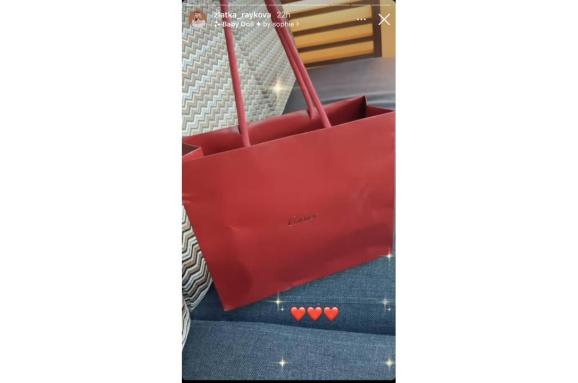 Райкова пусна в социалните мрежи клип, в който върти насам-натам луксозна червена торба, а под нея добави три сърца.