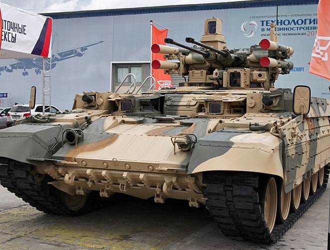 БМПТ “Терминатор” е бойна машина за поддръжка на танкове. Тя разполага с автоматични оръдия, ракети "Атака-Т", гранатомети.