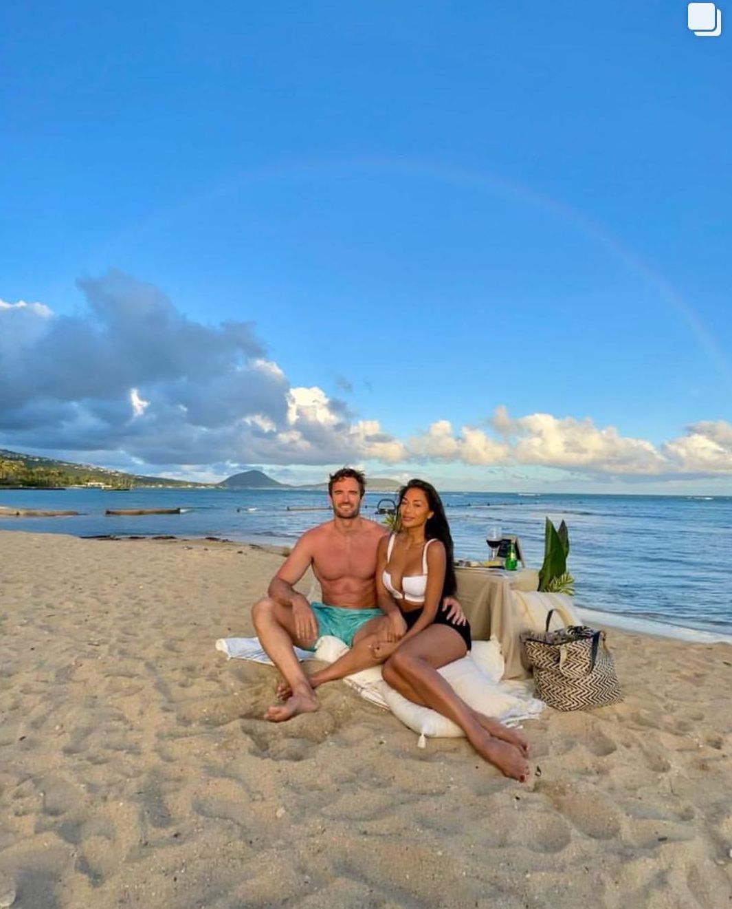 Заради пандемичната обстановка ръгбистът заложи на повече романтика и заведе Шерцингер на плажа, където двамата се насладиха на вечеря на брега на морето.