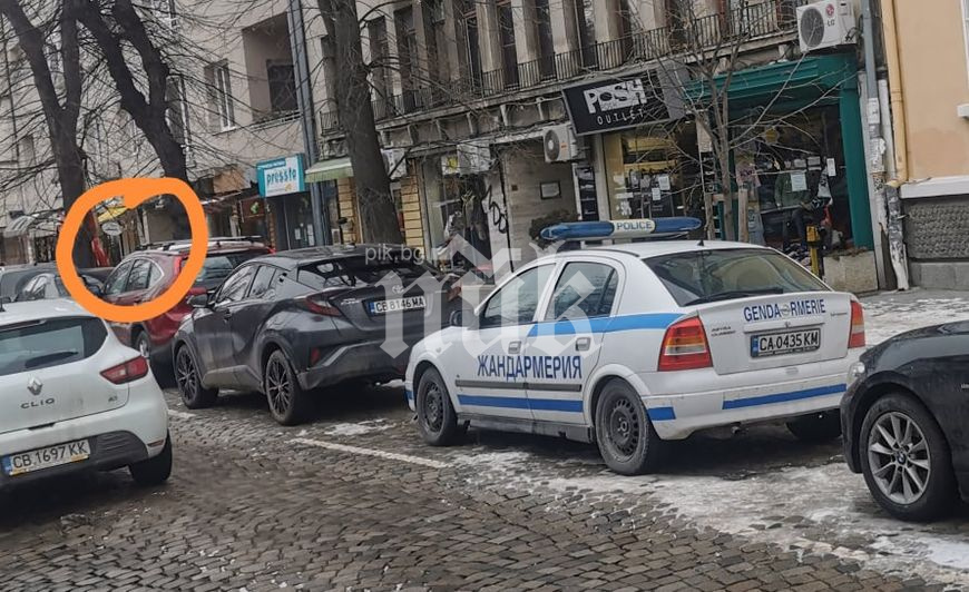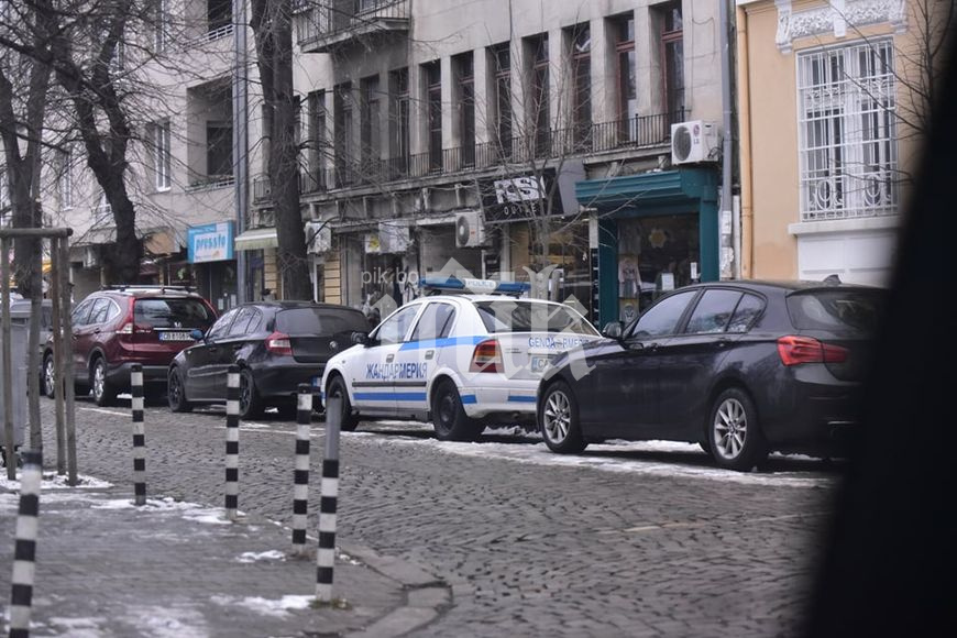 За да не се набива на очи, автомобилът на МВР е паркиран на 10-20 метра от сладкарницата, но униформените са си осигурили пряка гледка към входа, видяха още фоторепортерите ни.