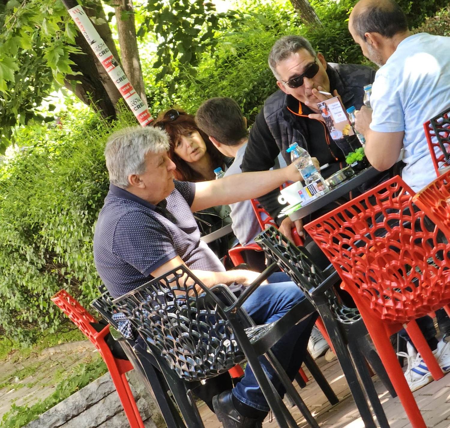 Видно от тях, Генов е решил да прекара дългия уикенд на раздумка със стари приятели, съпартийци и потенциални избиратели. Читатели на ПИК го засекли в кафене с още двама мъже.