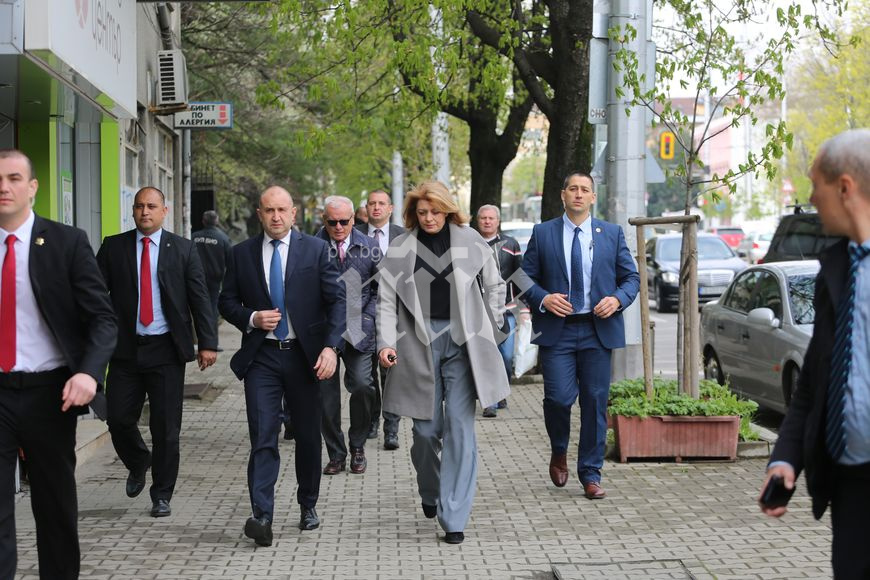 Иначе за празника на община "Оборище" президентската двойка пристигна с ескорт от три автомобила на Националната служба за охрана - два черни джипа "Тойота" и лимузина "Мерцедес".