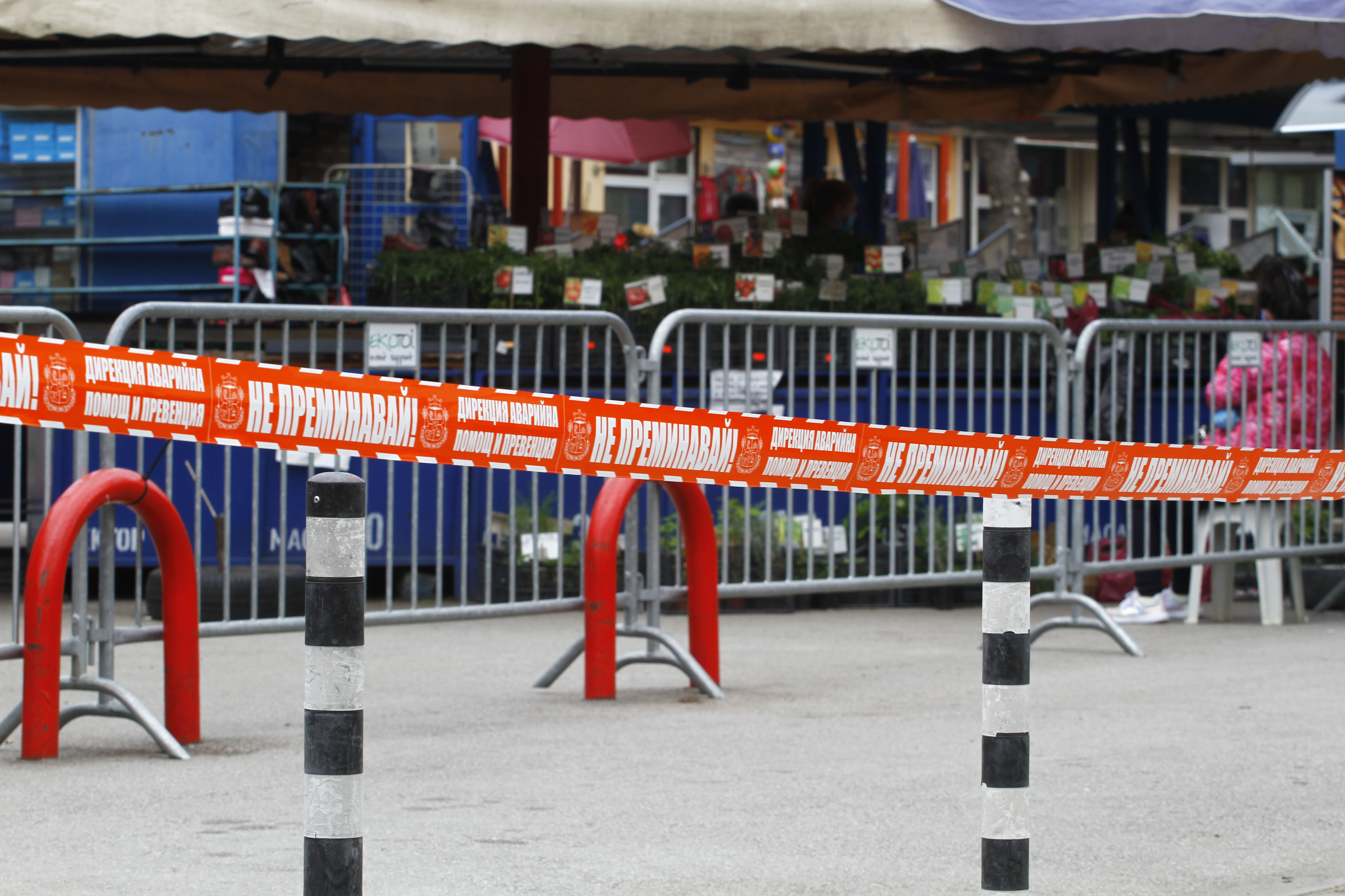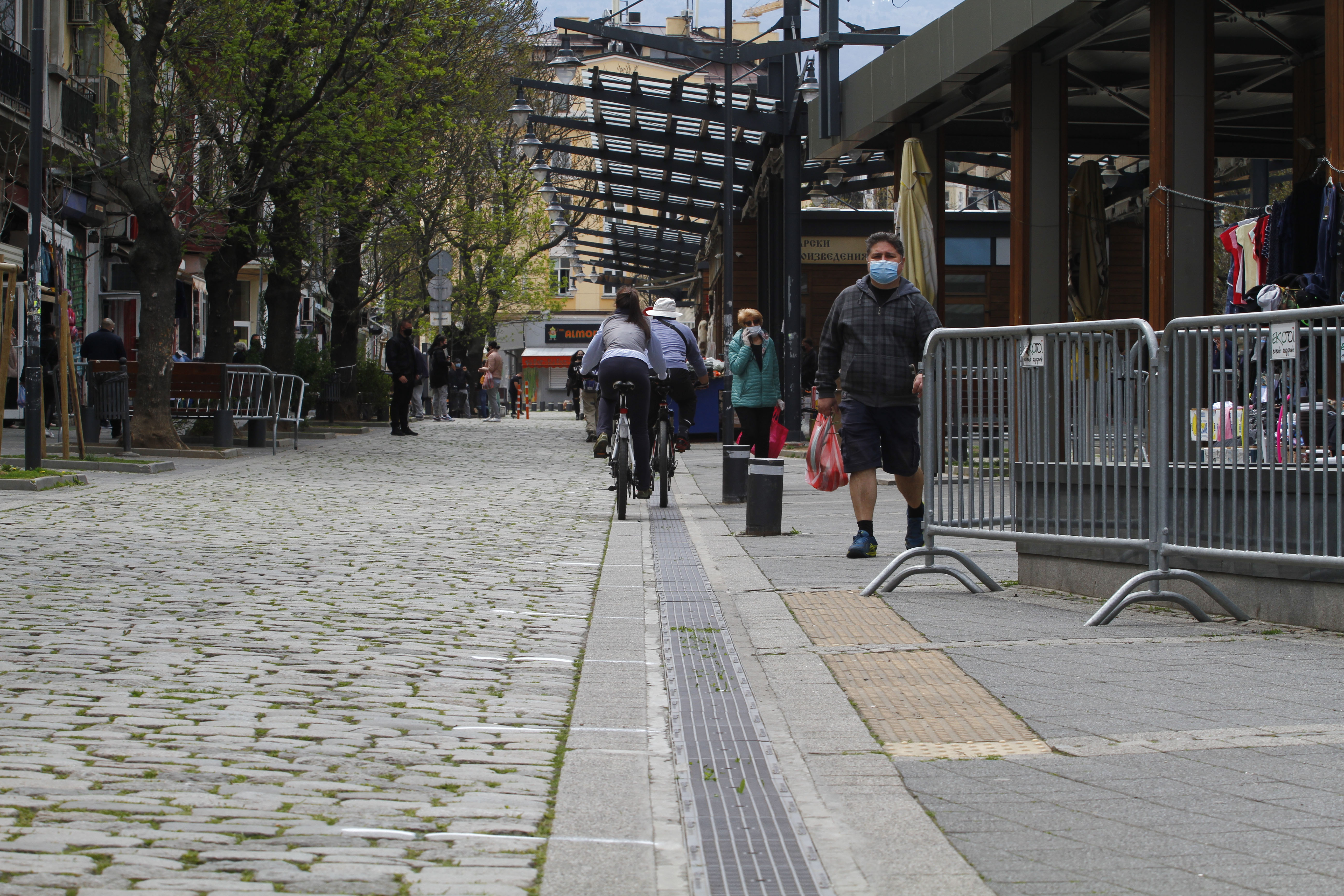 Частни охранители също следят за струпването на хора пред сергиите. Всички продавачи и клиенти са с маски и са на разстояние един от друг.
