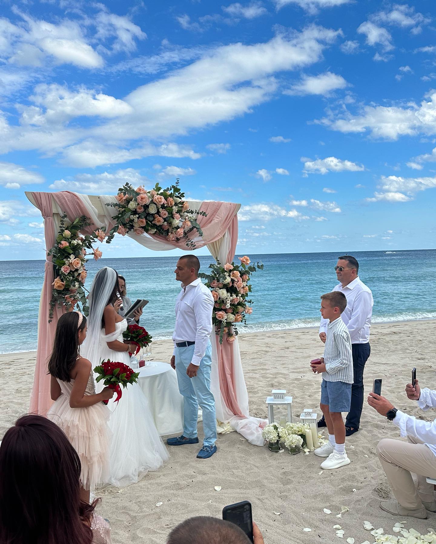 Брюнетката се венча за новия си богат съпруг на плаж в Маями