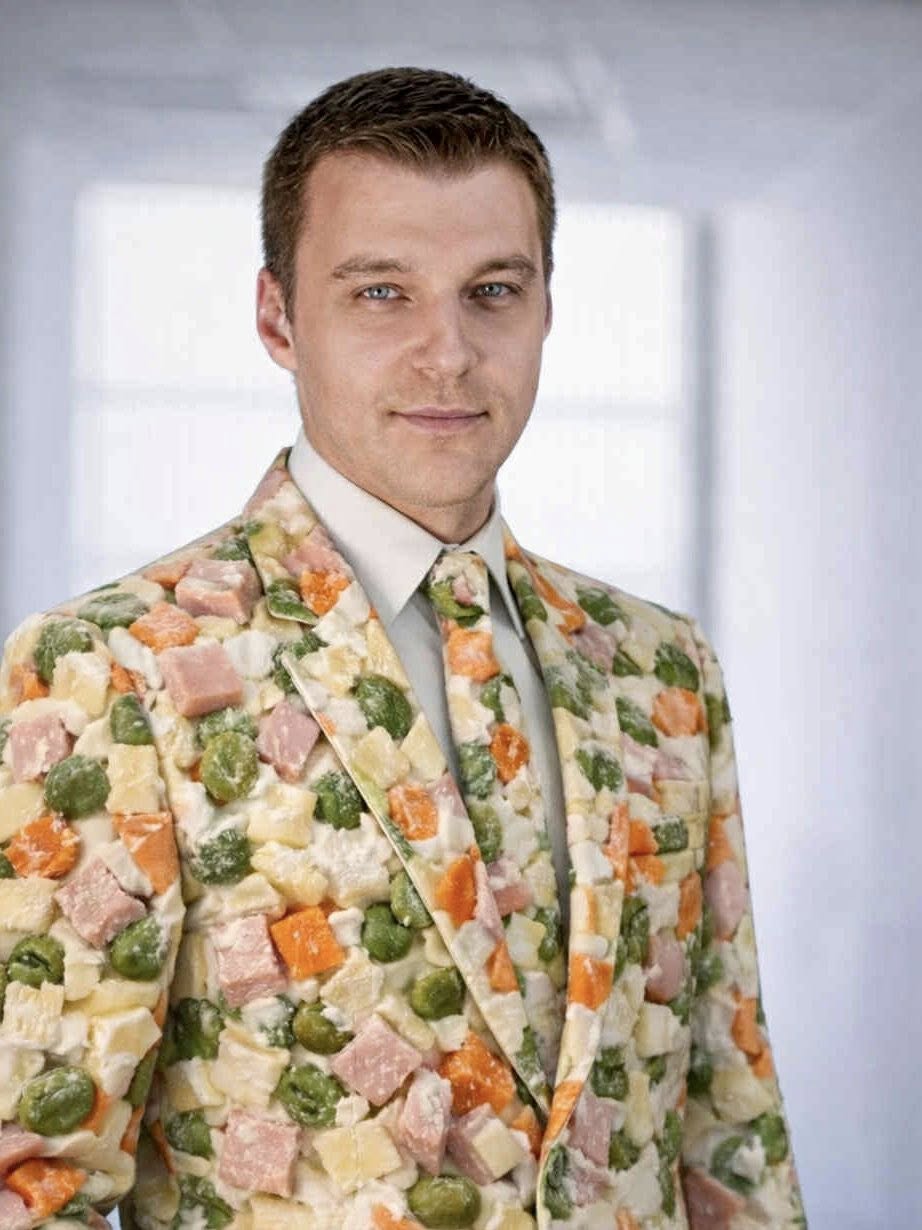 В навечерието на Нова година едно на пръв поглед шеговито включване в социалните мрежи на Христо Калоферов предизвика вълна от коментари и любопитство. Водещият на "Новините" по Нова тв публикува своя снимка, облечен в костюм като руска салата, и написа: "Жената ми избра костюма за новогодишната нощ. Трябвало да си отиваме".