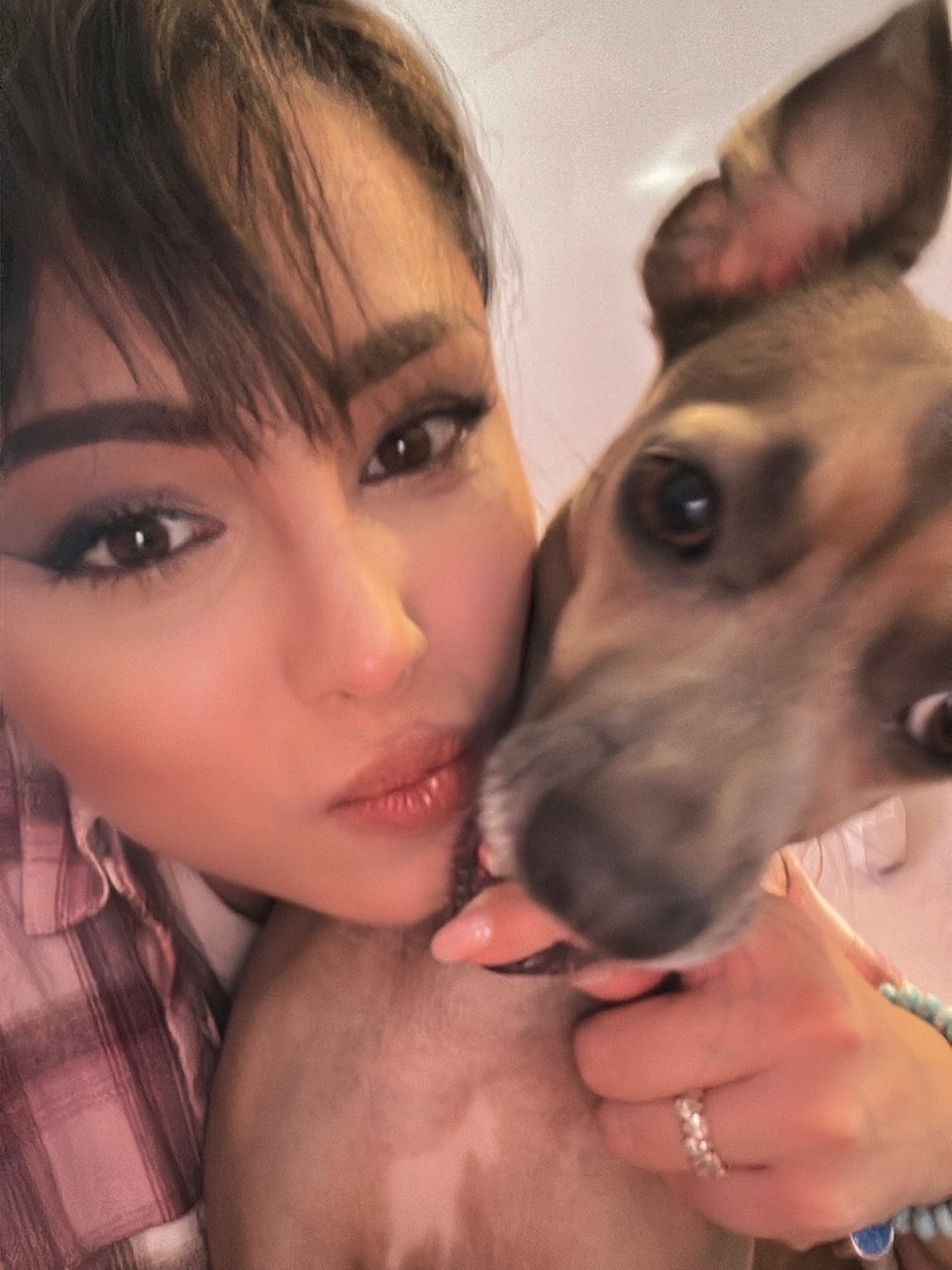 Бившата гимнастичка с домашния ѝ любимец Розичка