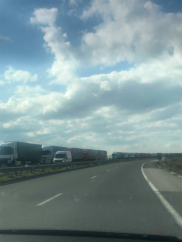 Единственият огромен проблем на “Капитан Андреево” остават километричните опашки от тирове на излизане от страната. Камионите вече са в тапа от 20 км, която само преди дни бе 14 км. Шофьорите им са толкова изнервени, че в знак на протест често затварят и двете ленти за движение и колите са принуди да чакат с часове докато го освободят, стига се и до ръкопашни сблъсъци, но патрули на място няма. Гледката по протежението на 20-километровата тапа пък е като на сметище в комбинация с тоалетна, тъй като заклещените с дни тираджии ползват за бунище магистралата “Марица”, а боклуците им хвърчат чак до Свиленград. Причина за всичко това е все още липсата на паркинг за тирове, така че да се бъдат спрени постоянните конфликти, инциденти и катастрофи в района.