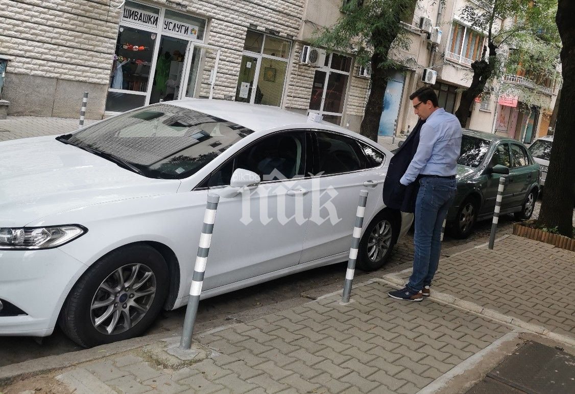 САМО В ПИК: Куриозен автоинцидент с депутат на "Промяната" пред тайната щабквартира на Кирчо и Кокорчо (СНИМКИ)