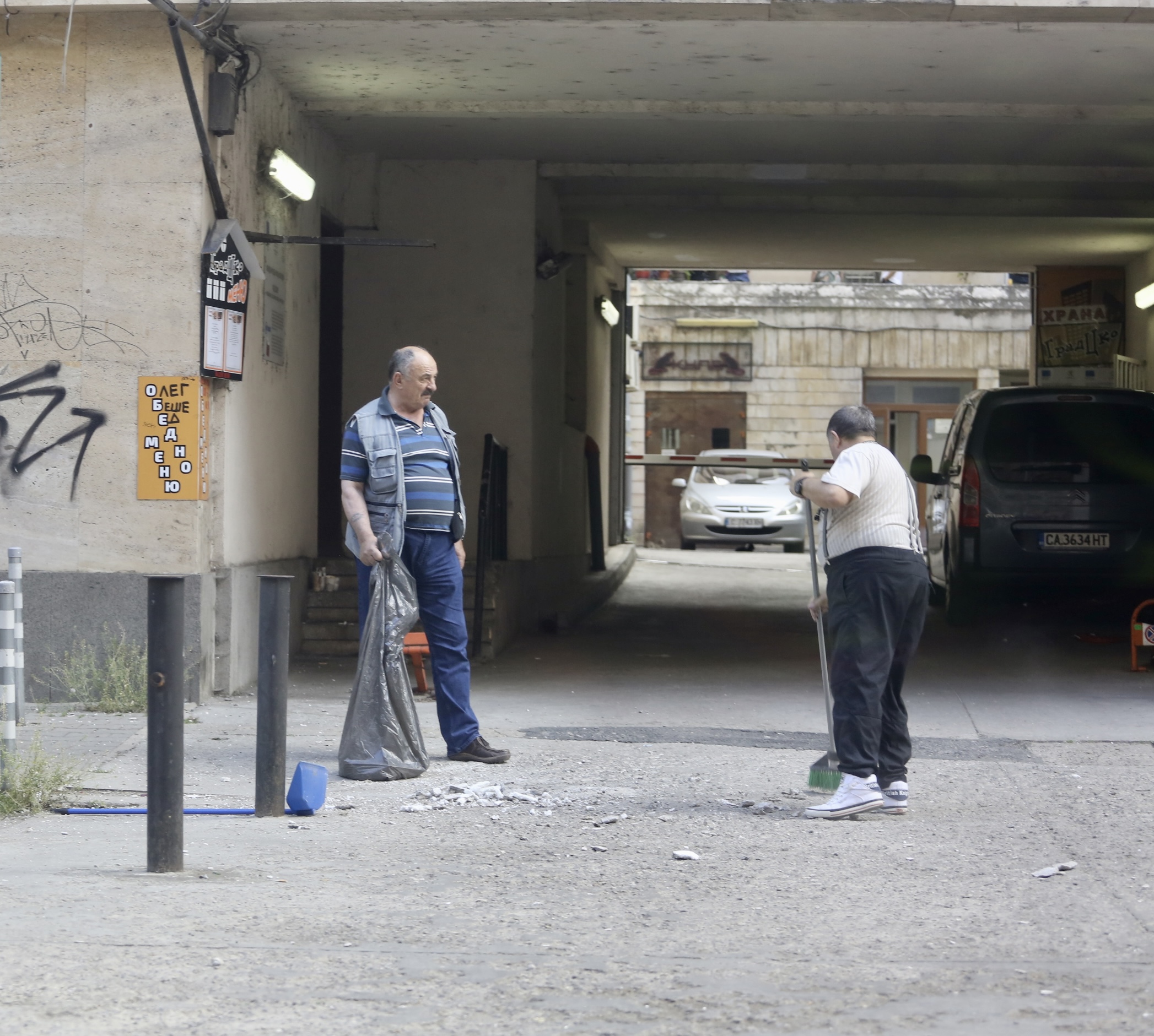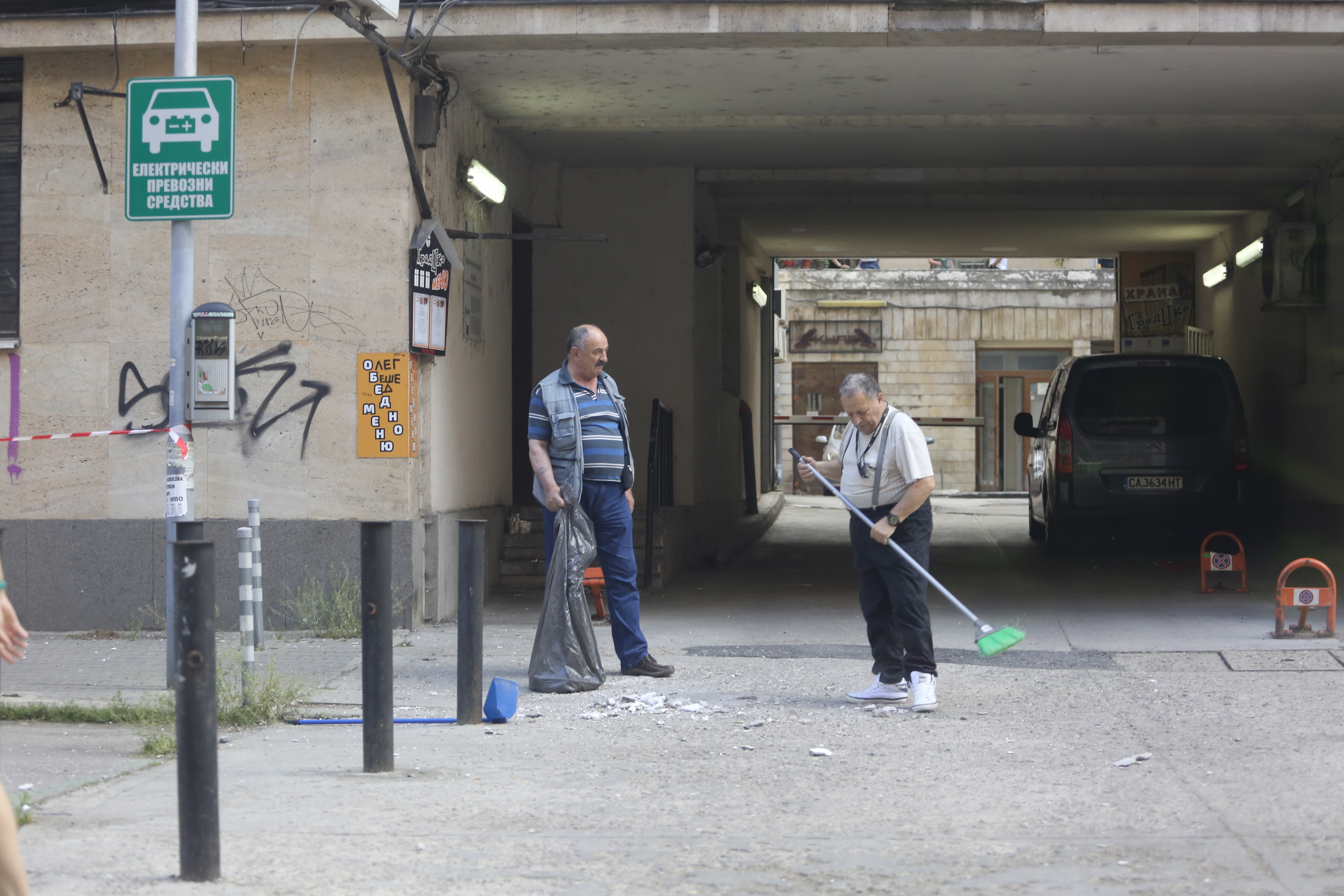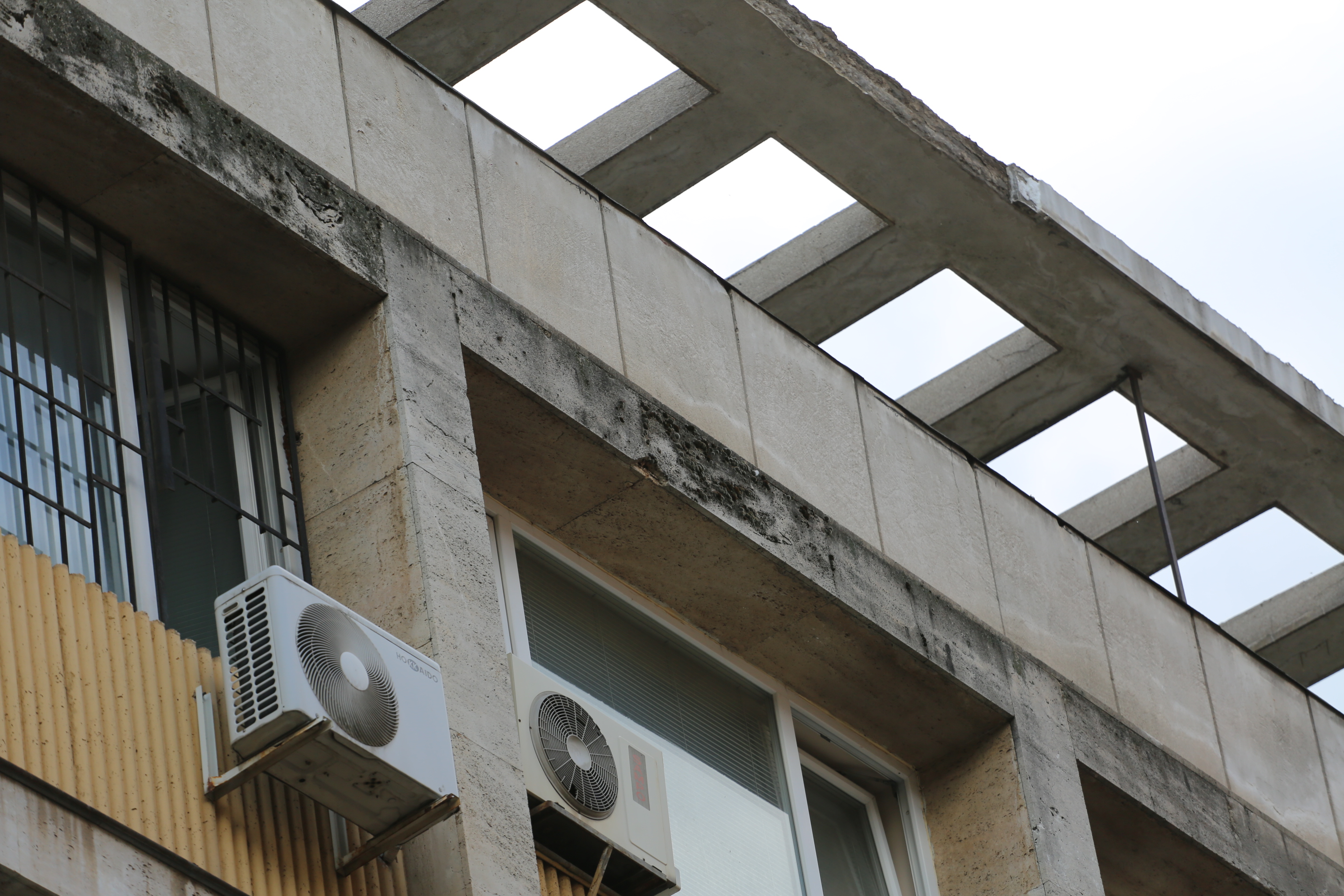 Мазилка от козирката на Министерството на икономиката се отрони и падна на тротоара на ул. "Славянска", видя репортер на ПИК.
