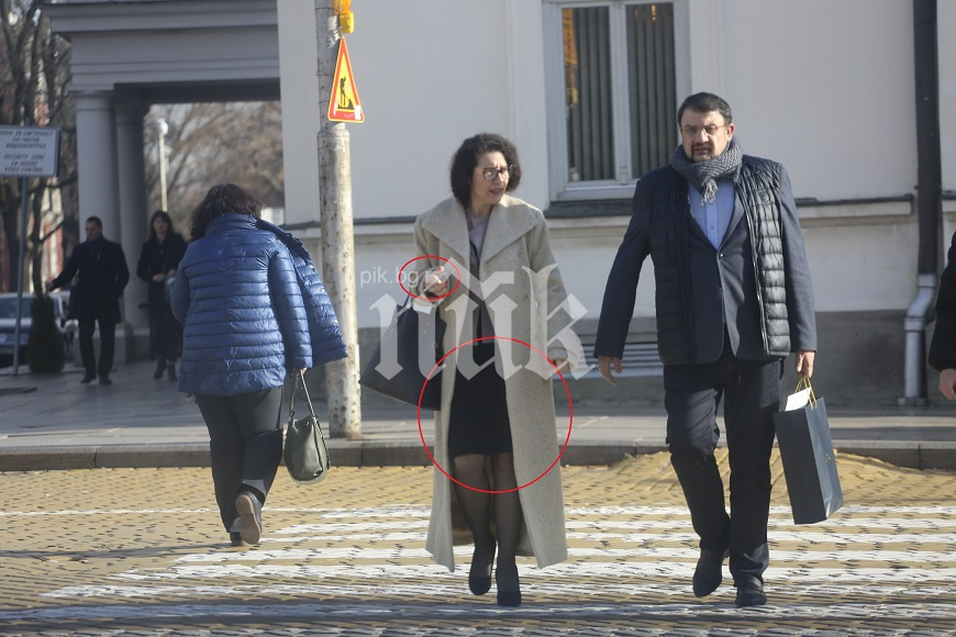 Бившата вицепремиерка Калина Константинова днес си тръгна от работа заедно с друг депутат от "Промяната" - Настимир Ананиев. Под дългото палто на Константинова можеше да бъде забелязана черна пола над коляното. Вицепремиерката едвам дочака да излязат извън сградата на Народното събрание, за да налапа цигара.