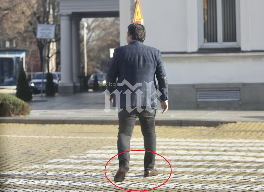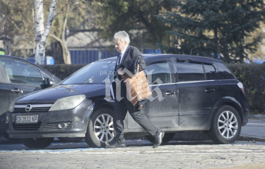 Бойко Рашков върви сам-самичък към паркинга на Народното събрание.