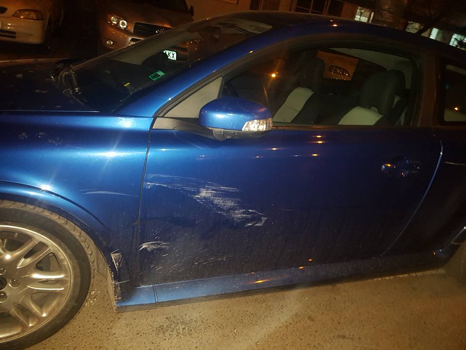 Ще публикувам една снимка и клип, но за съжаление не мога да покажа екшъна преди това. С две думи, точно както по филмите, таксиджията долетя някъде отзад зад мен и удряйки автомобила ми от лявата страна, шофьорът се опита да ме избута от пътя. За съжаление, аз нямаше къде да избягам или дръпна, защото карах в дясната лента, а до мен има тротоар и хора на него и така се бутахме с опрени автомобили един в друг в продължение на 100 метра. След това той ме изпревари и спря пред мен и слезе да се разправи в ръкопашен бой с мен.