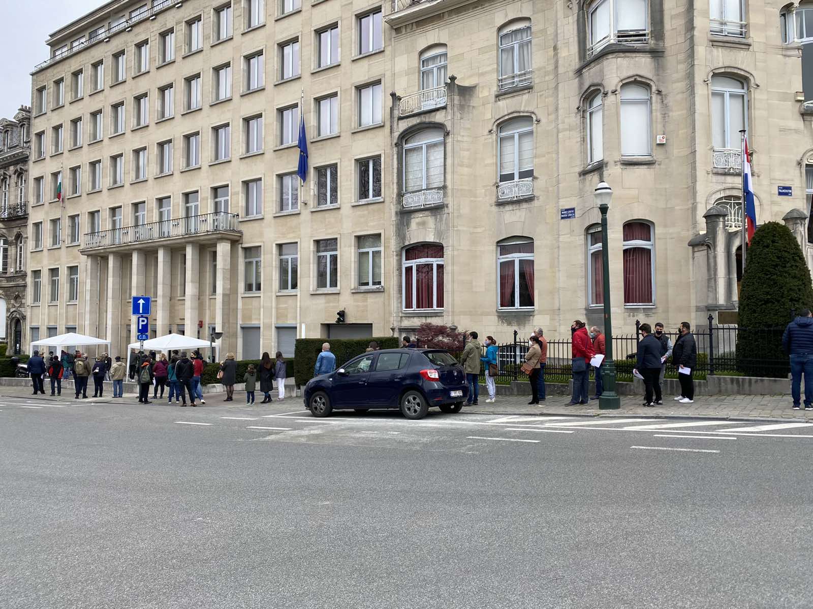 САМО В ПИК: Опашка от гласуващи пред посолството ни в Брюксел (СНИМКИ)