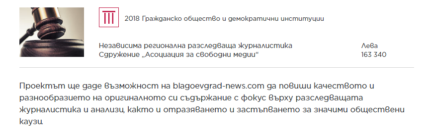 Огромната сума се усвоява от регионалния сайт blagoevgrad-news.com, собственост на същата Мариета Димитрова. Проверка на ПИК в раздел “Екип” на електронното издание показва, че Димитрова е единственият журналист в него и очевидно цялата сума прибира самата тя.