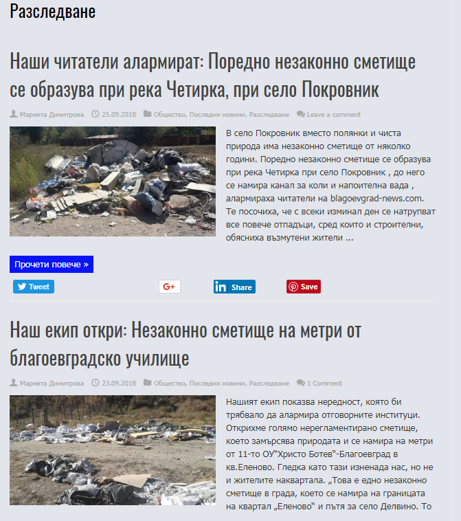 На сайта на Мариета е отделено централно място за нейните разследвания. Елементарна проверка показва, че напоследък същата не си дава много зор, за да оправдае огромната финансова инжекция. Последните й теми в раздел “Разследване” са читателски сигнали или авторски фотосесии на незаконни малки сметища, с които така или иначе ни заливат в потребителските си рубрики сутрешните блокове на големите телевизии.