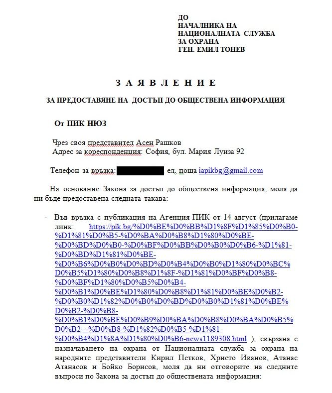 След като вчера се появи информация, че Националната служба за охрана пази Кирил Петков, Христо Иванов и Атанас Атанасов, Агенция ПИК изпрати въпроси до НСО по Закона за достъп до обществена информация.
