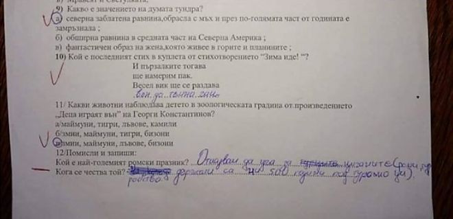 От няколко дни социалните мрежи са залети от споделяне и коментари на една снимка. На пръв поглед на кадъра се вижда тест на ученик. Особеното е случая е отговорът на последния въпрос.