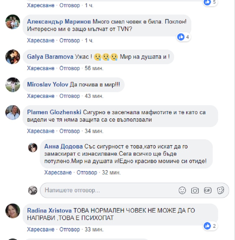 "Почивай в мир. Дано извършителят бъде заловен и си получи заслуженото", допълва Людмила Стоянова.