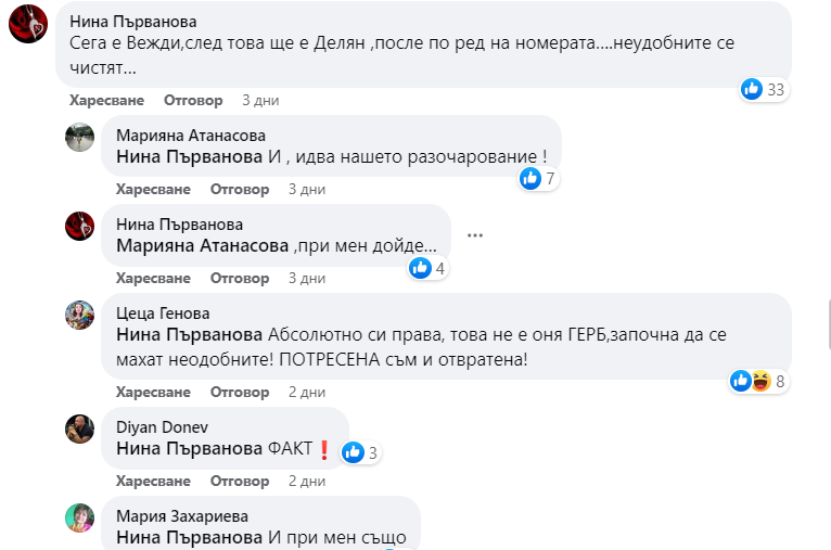 "При този другарски съд с Вежди не е за чудене, ако Делян Добрев е следващият. Любен Дилов не могат да го изпъдят, понеже е син. Партията се чисти от нездрави елементи", заяви в социалната мрежа и журналистът Антон Баев.