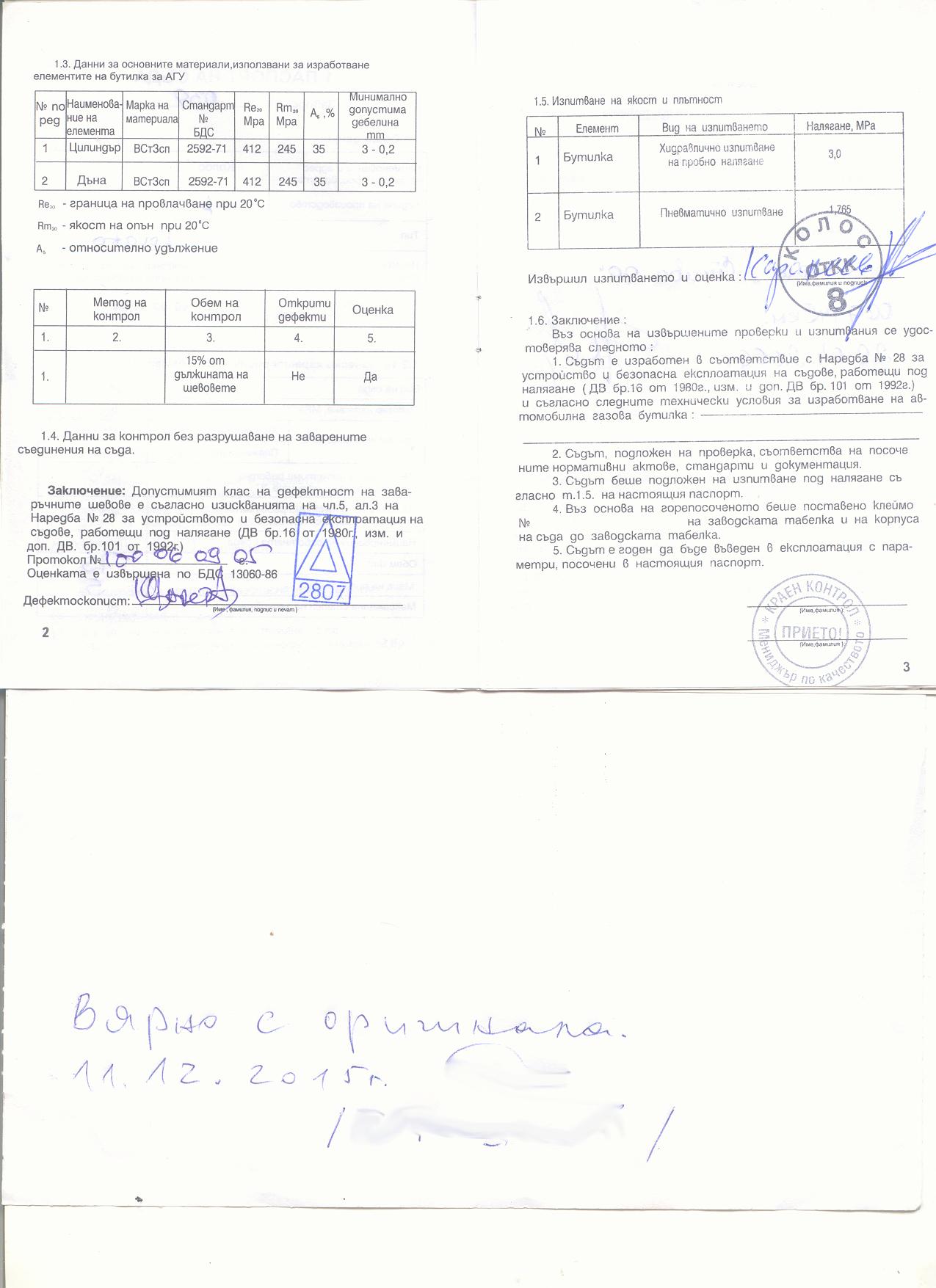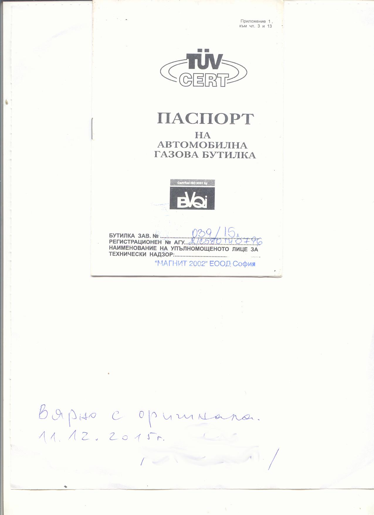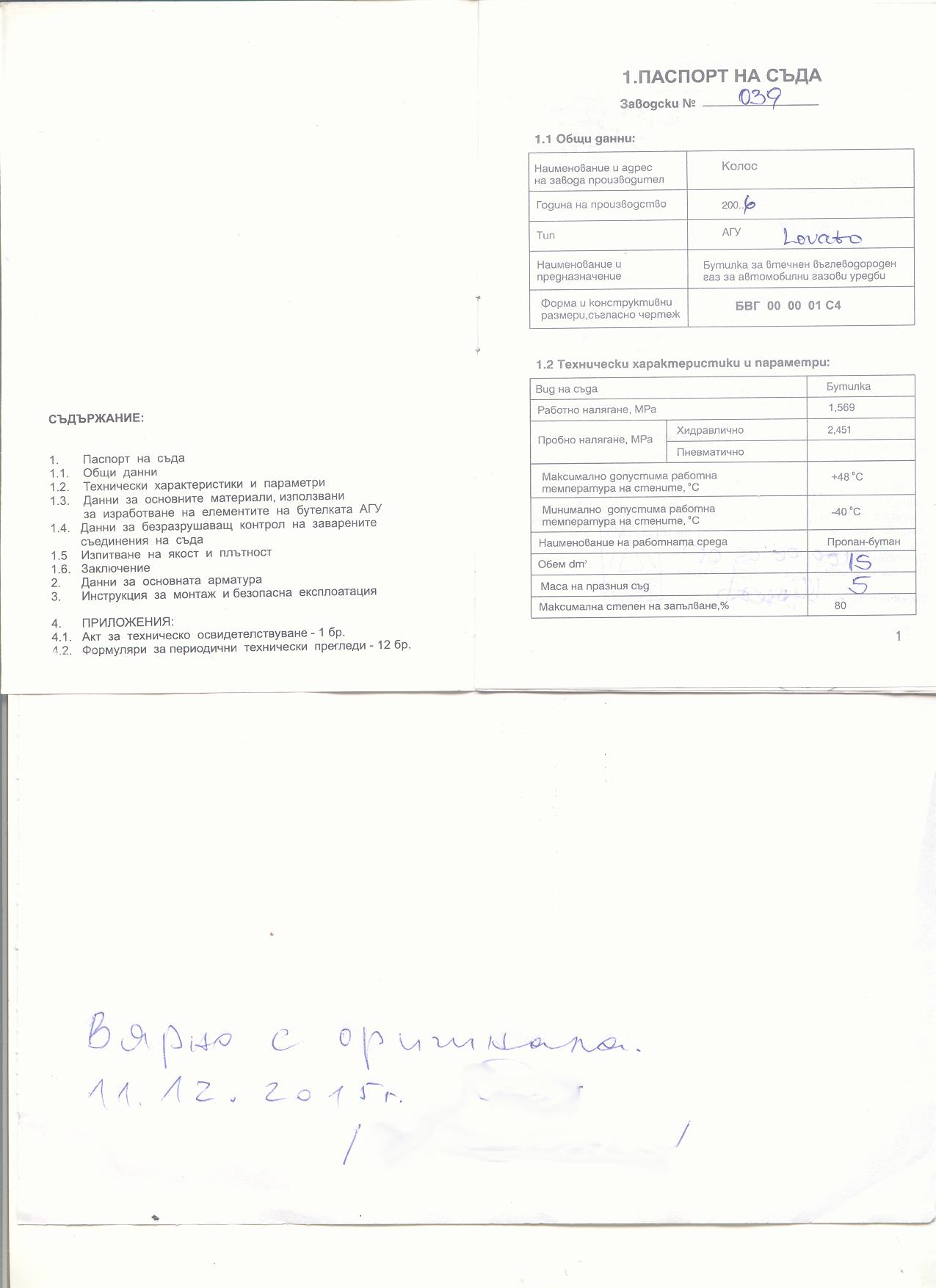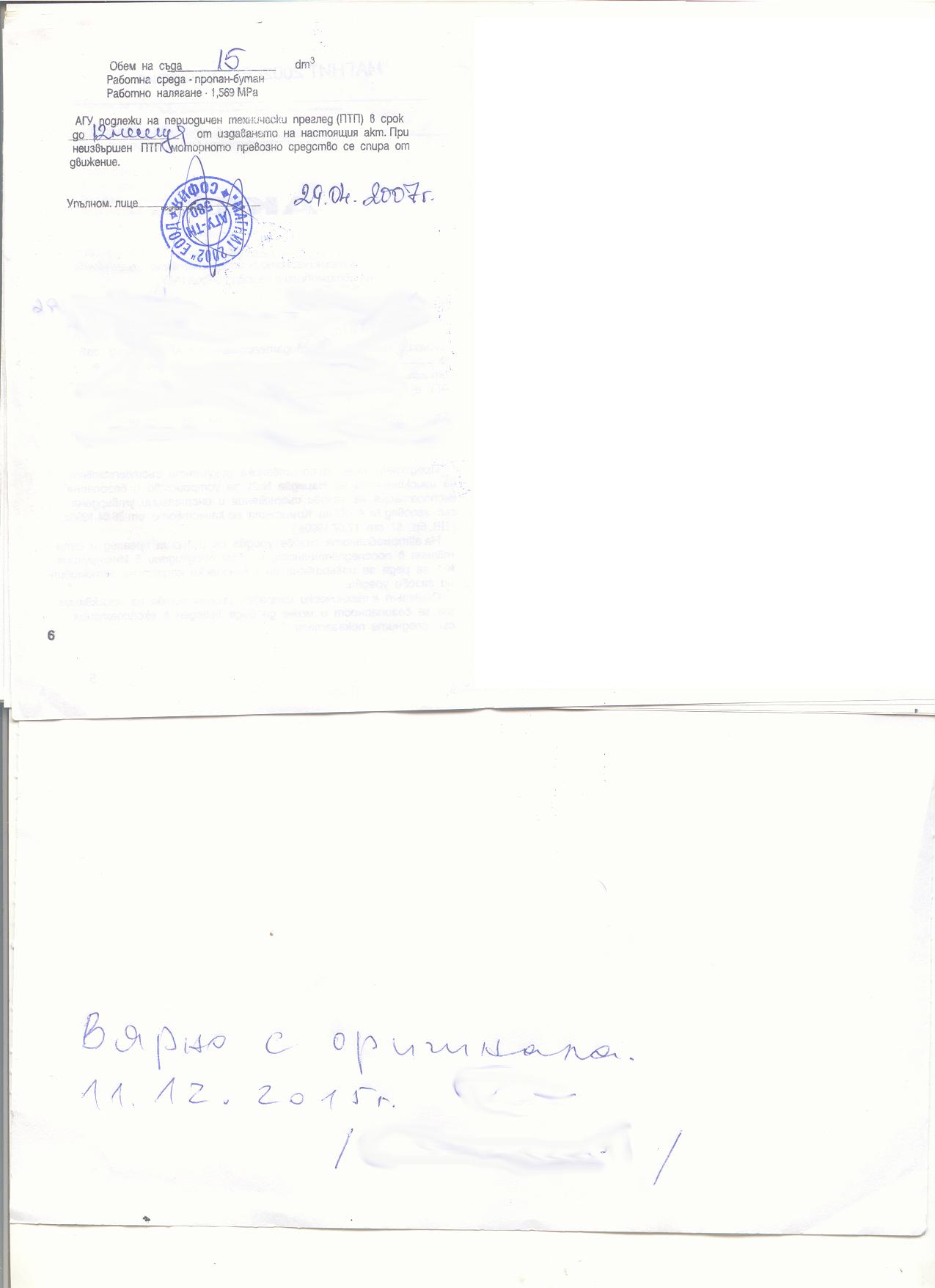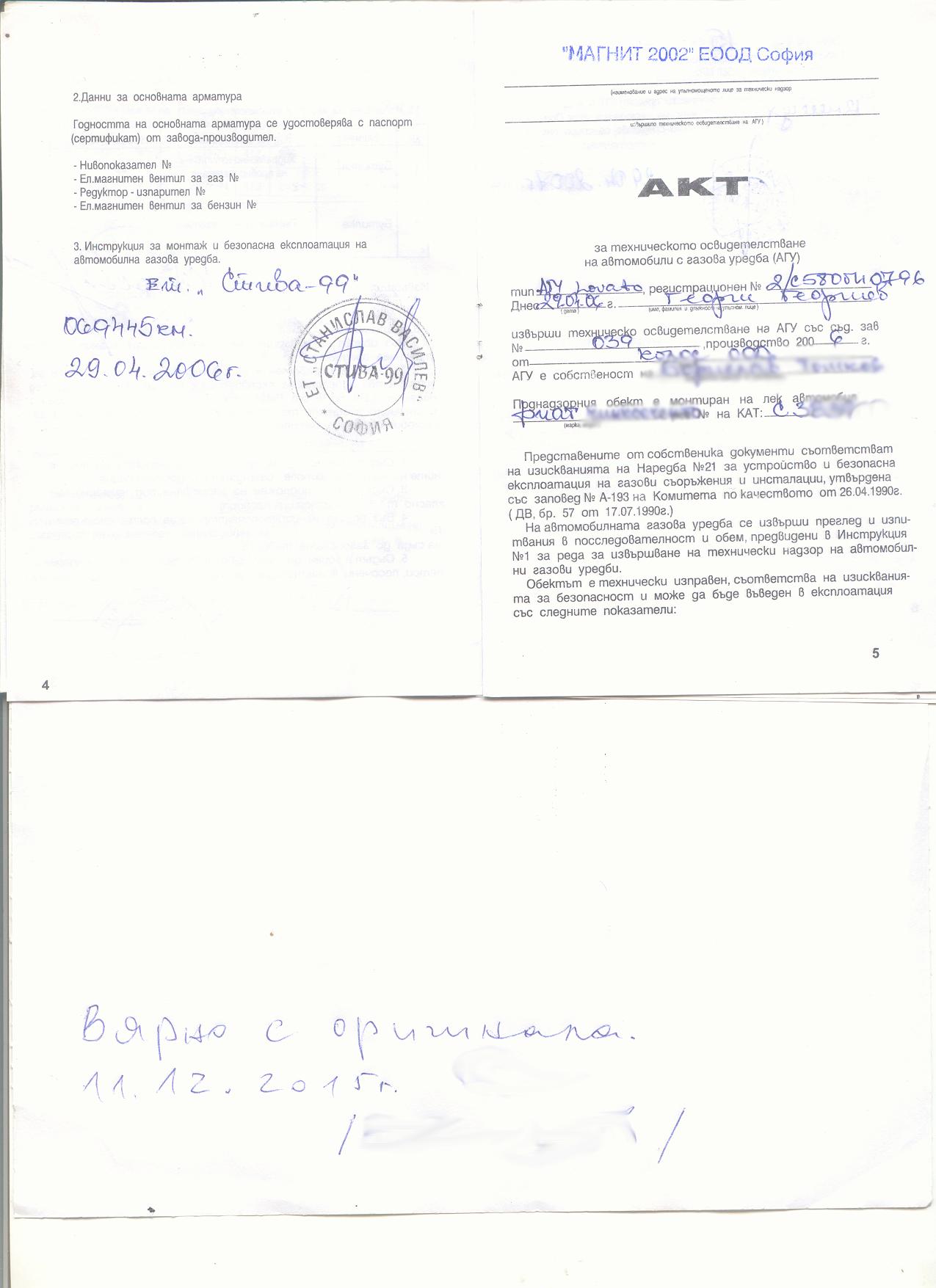 Потърпевшият прилага и снимки на фактурата за покупката и техническия паспорт на газовата уредба на автомобила: