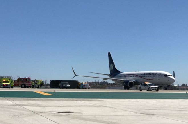 Пътнически самолет "Боинг 737" се сблъска с камион след кацне на летището в Лос Анджелис, щата Калифорния.