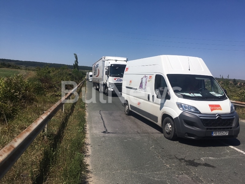 В момента колата все още е на пътното платно и движението по натоварения участък е затруднено. На местопроизшествието има екип на полицията, който регулира трафика.